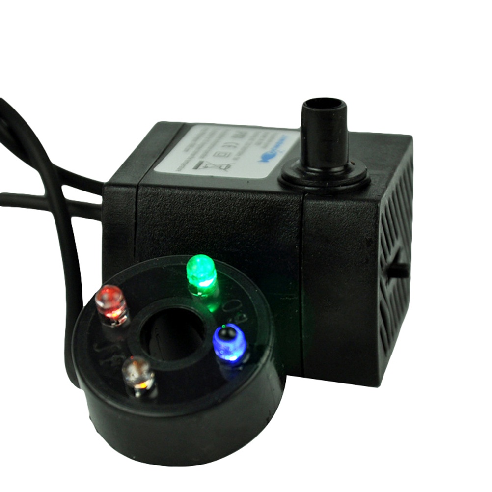 5W Powerful Submersible Water Pump with LED Light for Fountains Ponds Aquarium Fish Tank Statuary with EU Plug Low Pressure Aquarium Rockery Handicraft Accessories