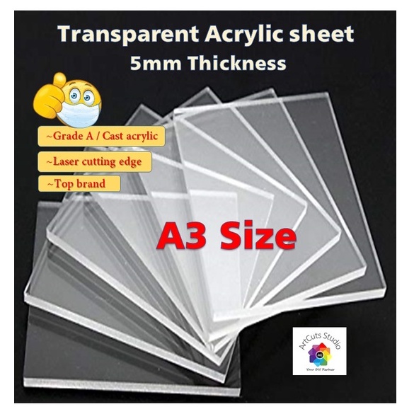 5mm Transparent Cast Acrylic Sheet Board Perspex A3 size DIY project Aquarium Cover Key Chain PC casing