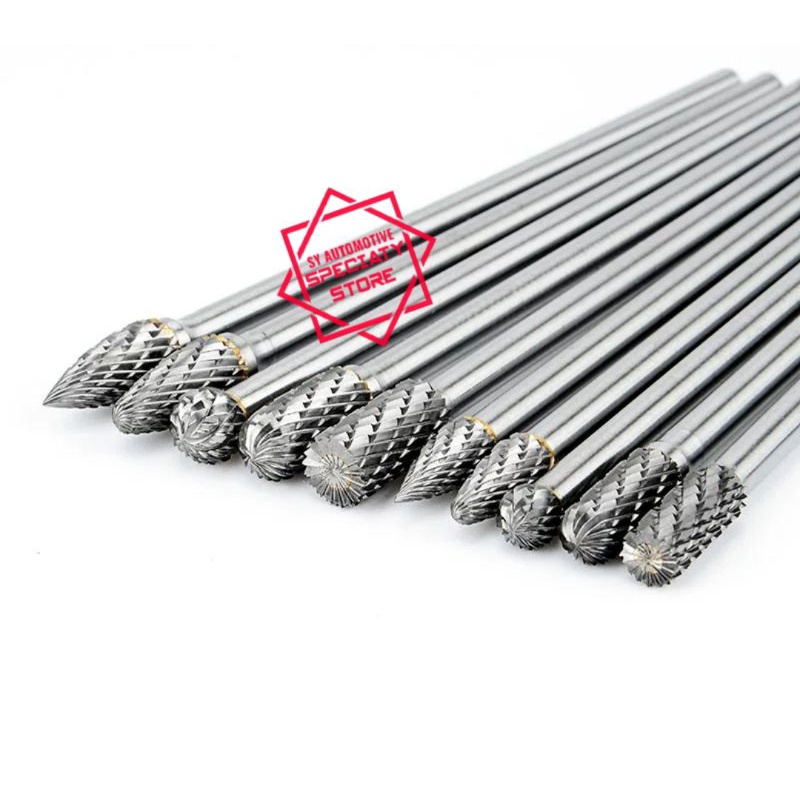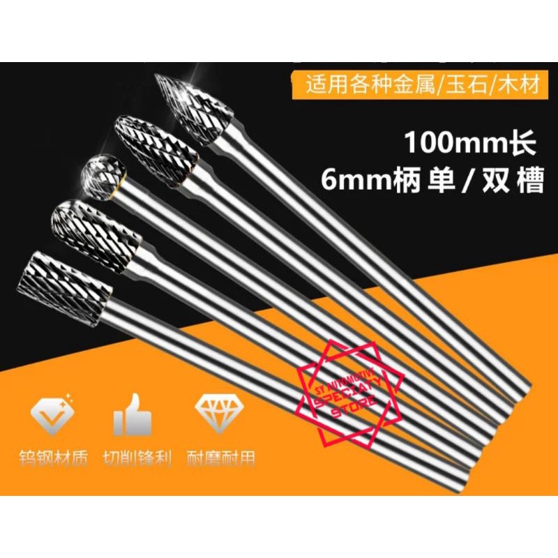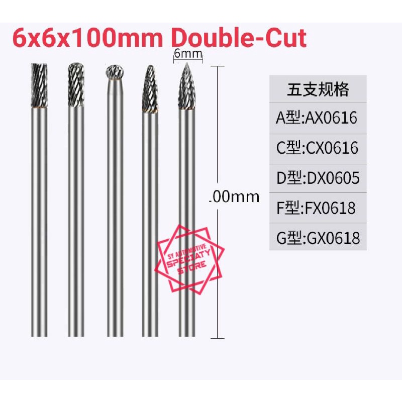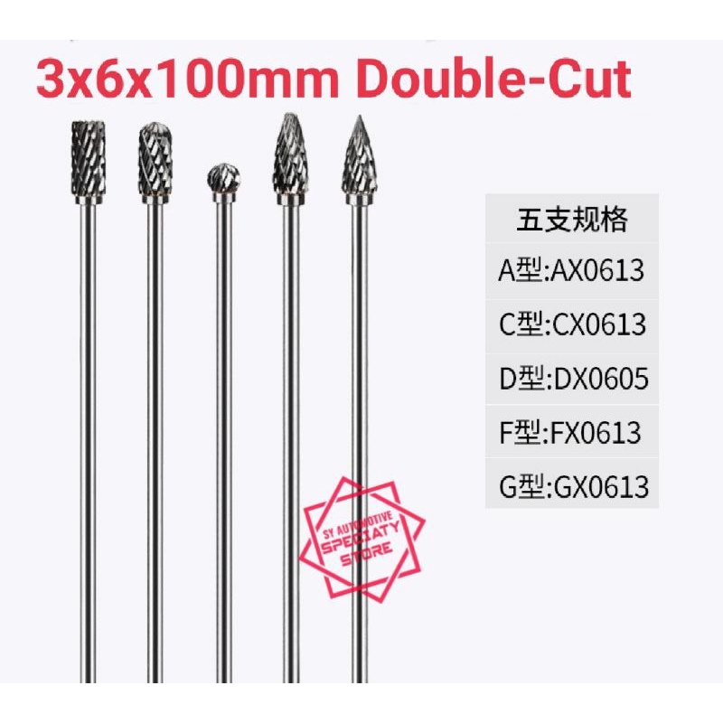 5pc 3x6 Mata Drill Panjang Mata Porting Mata ley Head Mata ley Porting Long Tungsten Carbide Burr 6x3 100mm Double Cut