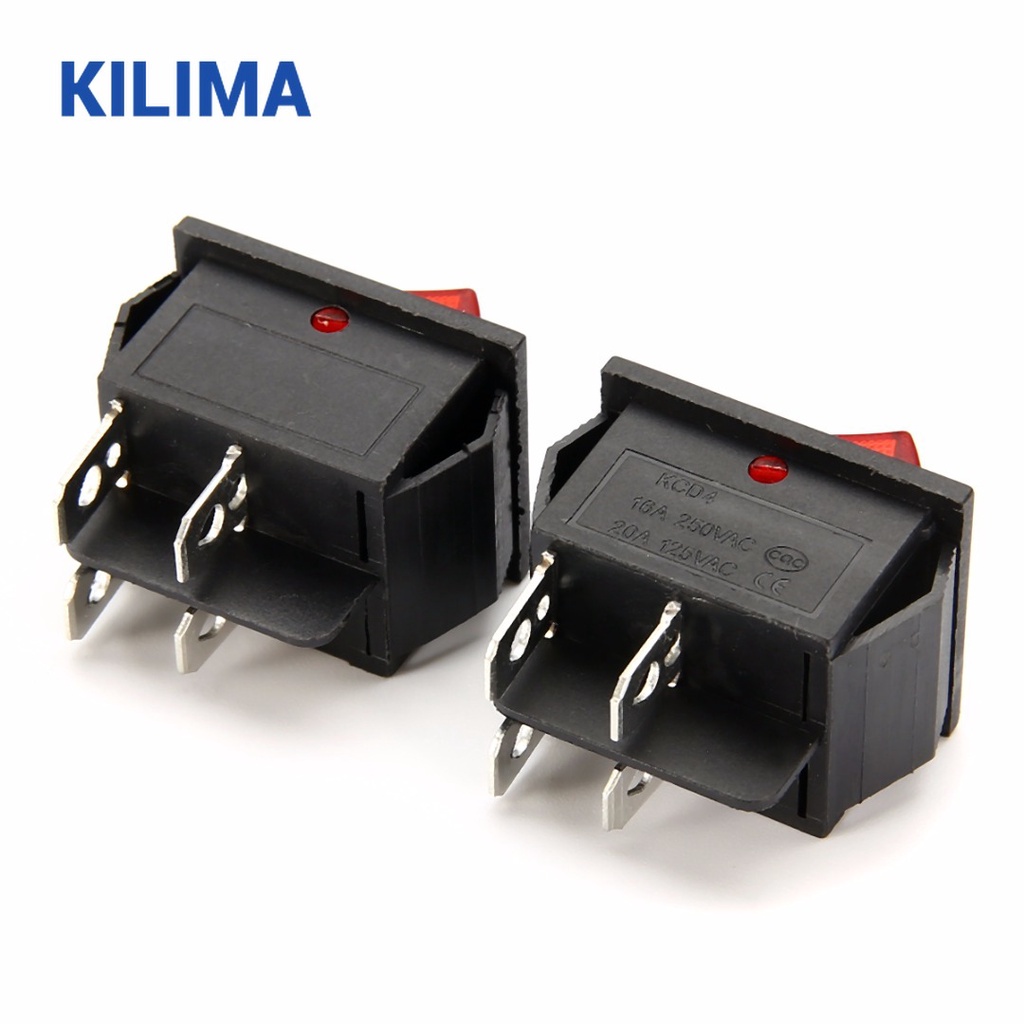 5pcs 2 Position Red Light Rocker Switch 16A/250V KCD4-20 4 Pin ON/OFF Toggle Switches 35 x 25.5 x 10mm