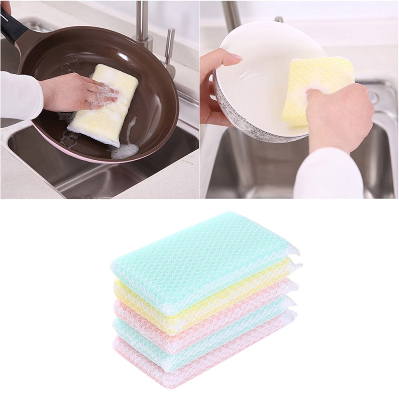 5pcs Dish Cup Bowl Washing Sponge Wipes Simple Practical Kitchen Cleaning Sponge With Net For Home