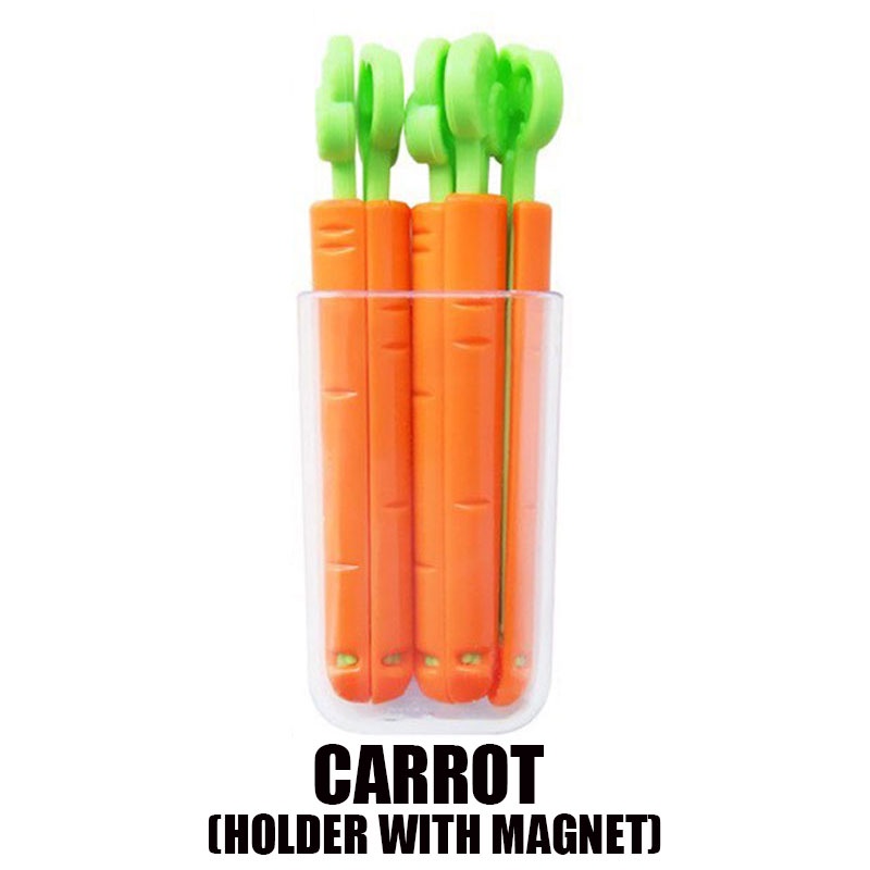5pcs Food Snack Sealing Clip Seal Food Storage Clips Holder Box Magnetic Moisture Proof Carrot Cactus Shape 食物封口夹冰箱贴