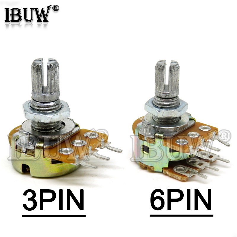 5pcs WH148 B1K B2K B5K B10K B20K B50K B100K 3PIN 6PIN 15mm Shaft Amplifier Dual Stereo Potentiometer