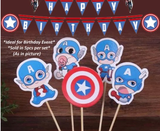 5pcs per set - Cute Creative Captain America Cake Toppers for Kids Birthday toys for girls