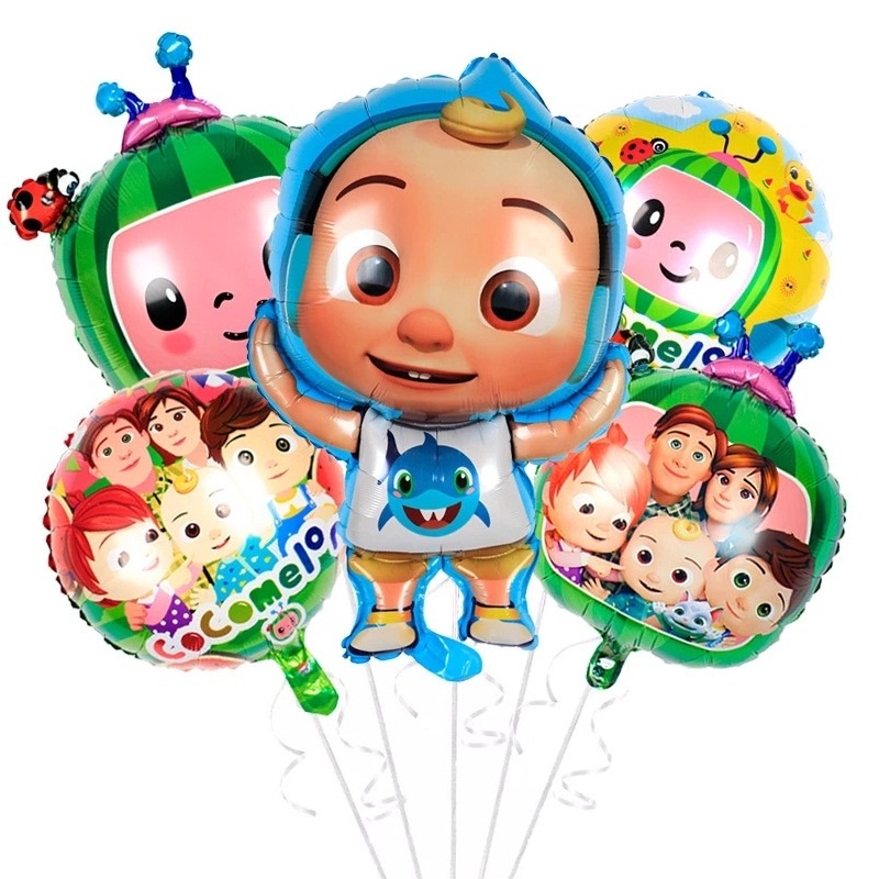 5pcs/set CoComelon Balloons Children Birthday Decorations Foil Ballons Cartoon Boy Family Watermelon Cartoon Aluminum Balloon