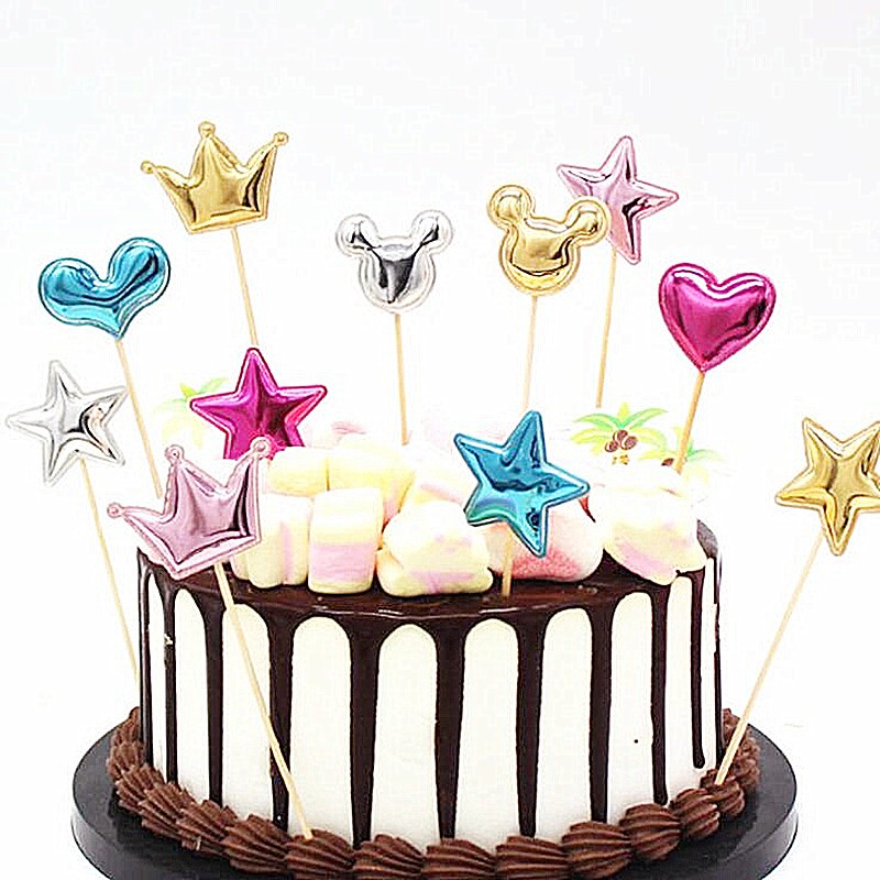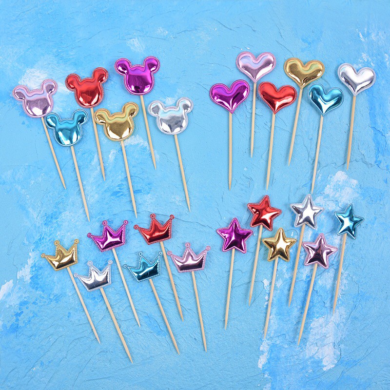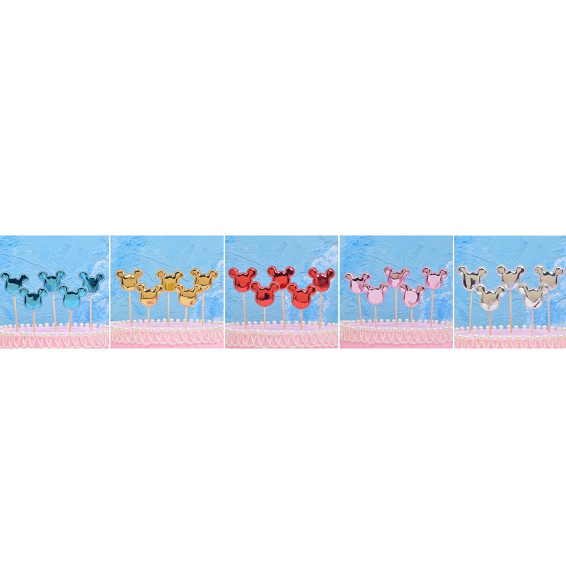 5pcs/set Mickey Minnie Mouse Head Cake Topper Love Crown Star Kids Birthday Party Cupcake Topper Valentines Wedding Decoration Favors