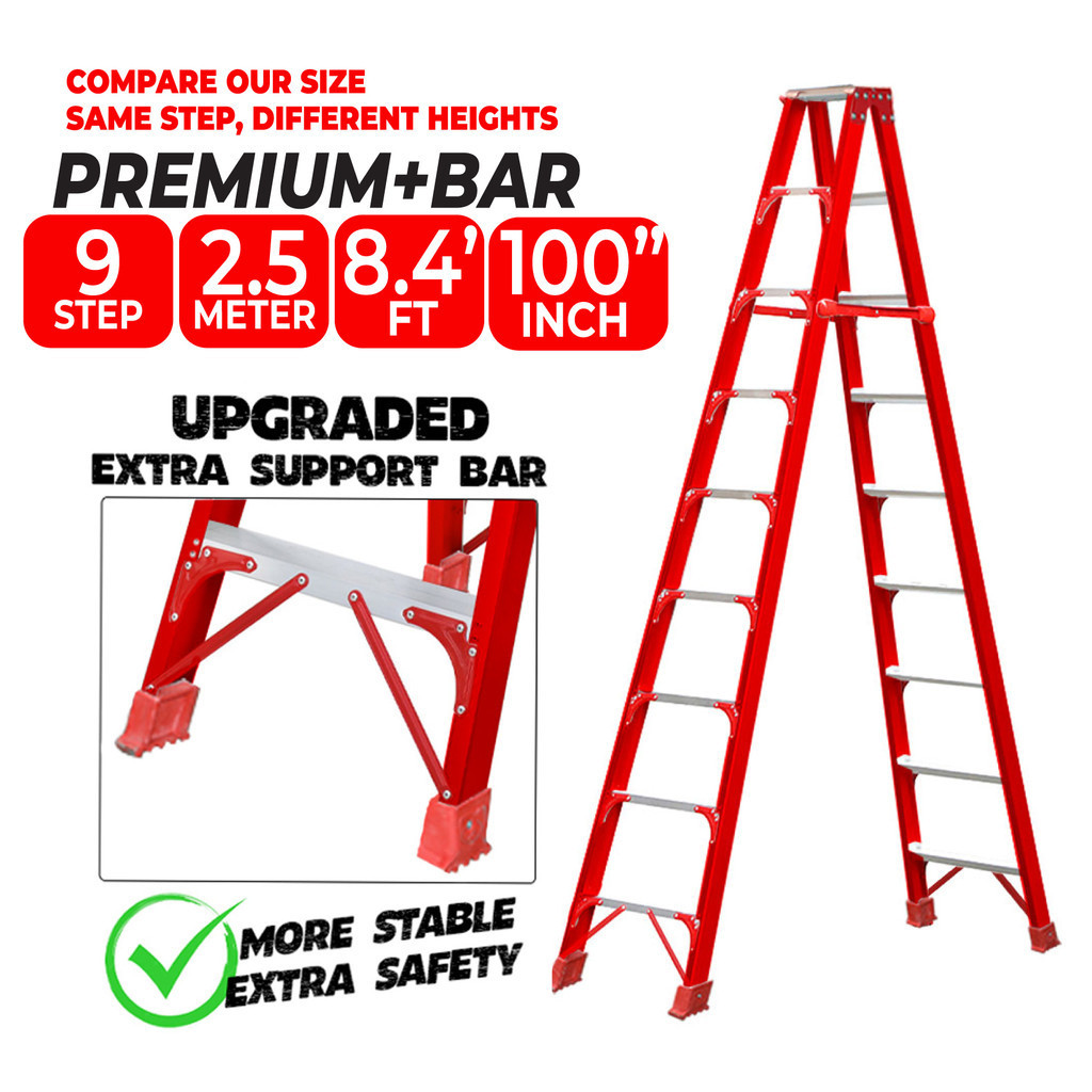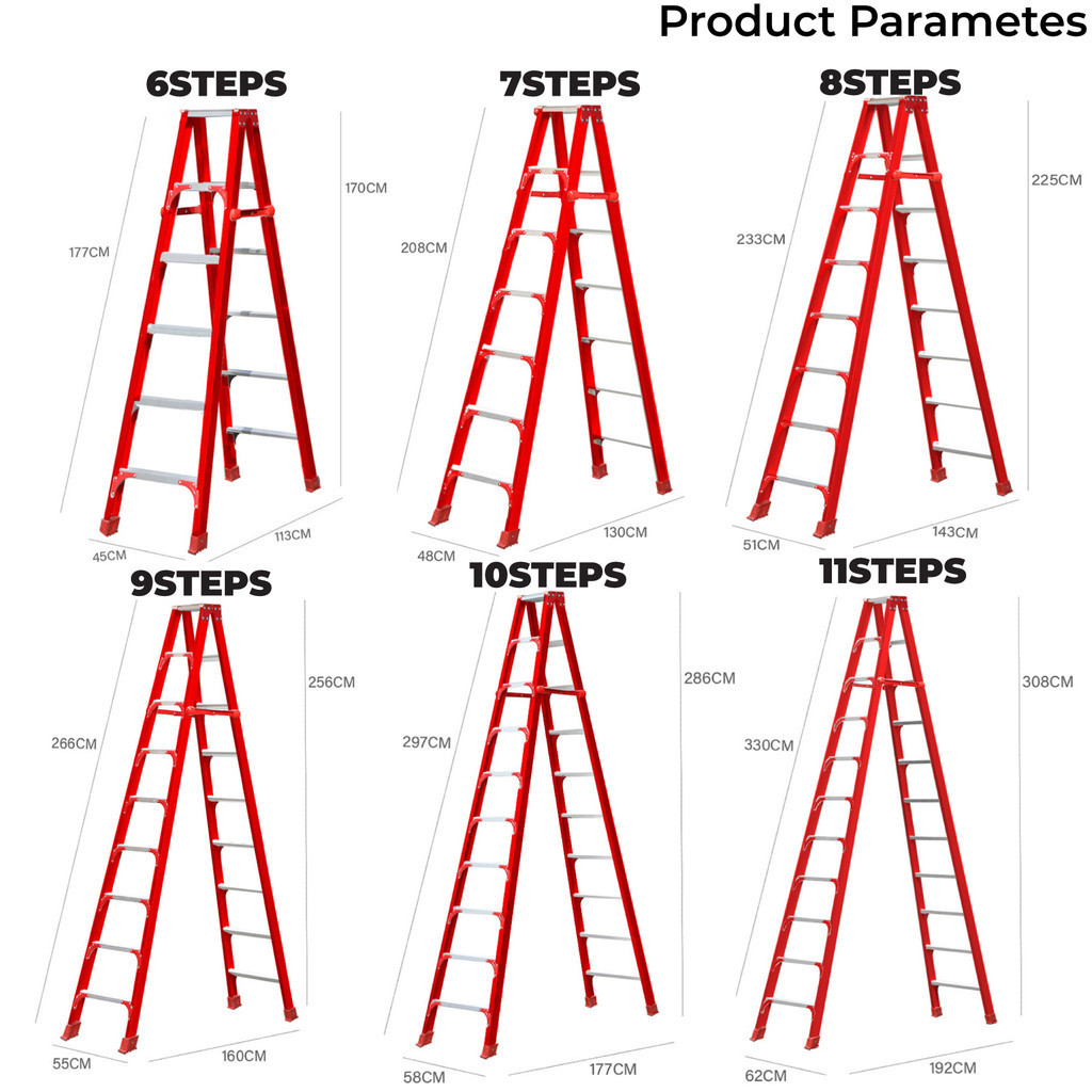 6-12 STEP Ladderman RED Reinforced Heavy Duty Aluminium Double Sided Ladder Multi Purpose Ladder Tangga Lipat Aluminium
