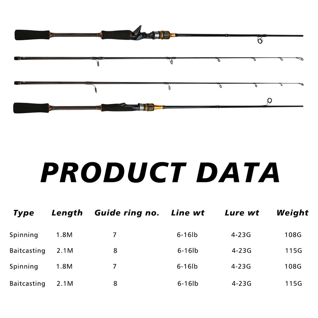6-16LB 2Tips Fishing Rod M/MH Spinning Rod Baitcasting Rod Full Carbon Casting Rod Toman Rod Snakehead Rod