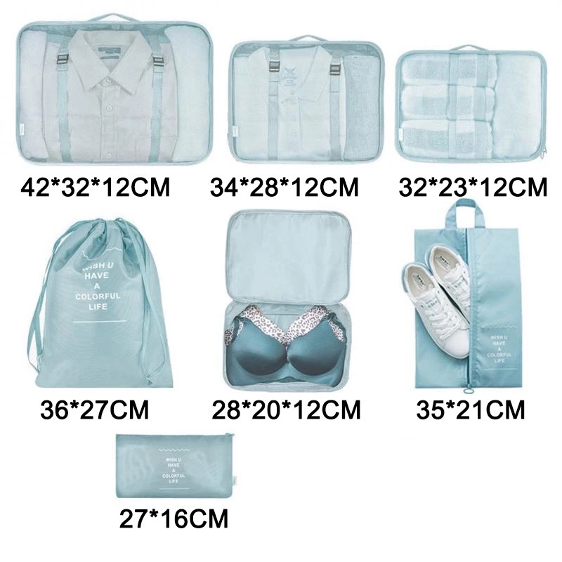 6/7 in 1 Set Travel Bag Packing Clothes Storage Organizer Bag Pouch Multi Size Organizer Bag