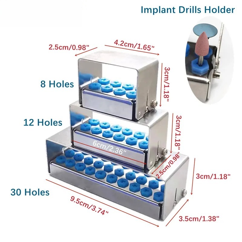 6/8/12/30 Holes Dental Scaler Tips Holder Implant Drills Organizer Bone Bur Block Box Disinfection Storage Case Stand Autoclave
