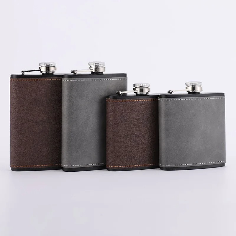 6/8Oz Pocket Hip Flask Leather Covered Stainless Steel Flask For Drinking Alcohol Whiskey Flasks