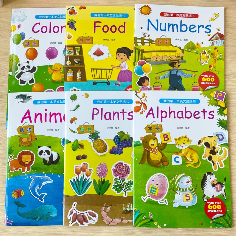 6 Books Set Bilingual Language English Chinese Sticker Books Kids Fun Learning Education Playing & Learning