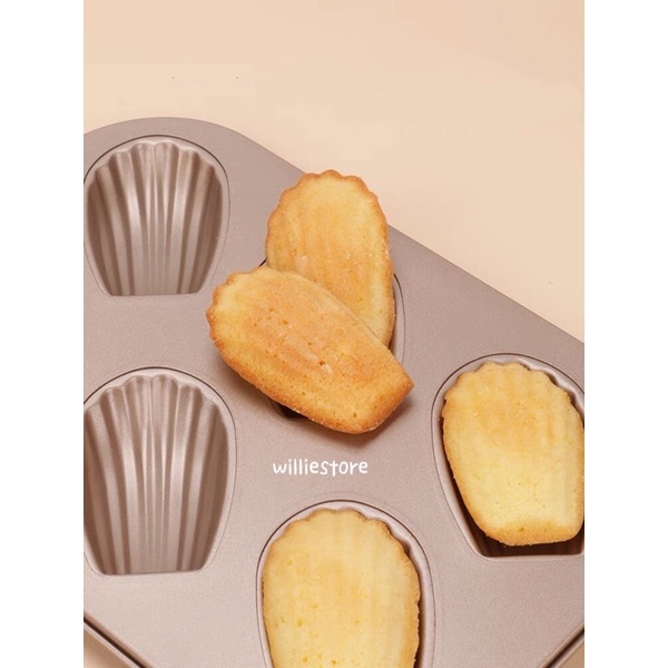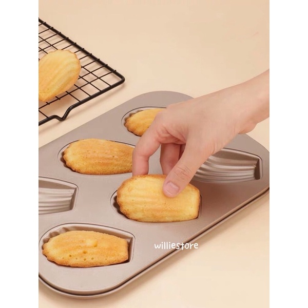 6 Cavity Gold Color Non-Stick Elliptical Scallop Madeleine/Medeleine Mold Cake Pan/Loyang Cake Acuan Bahulu Kek/Madeline