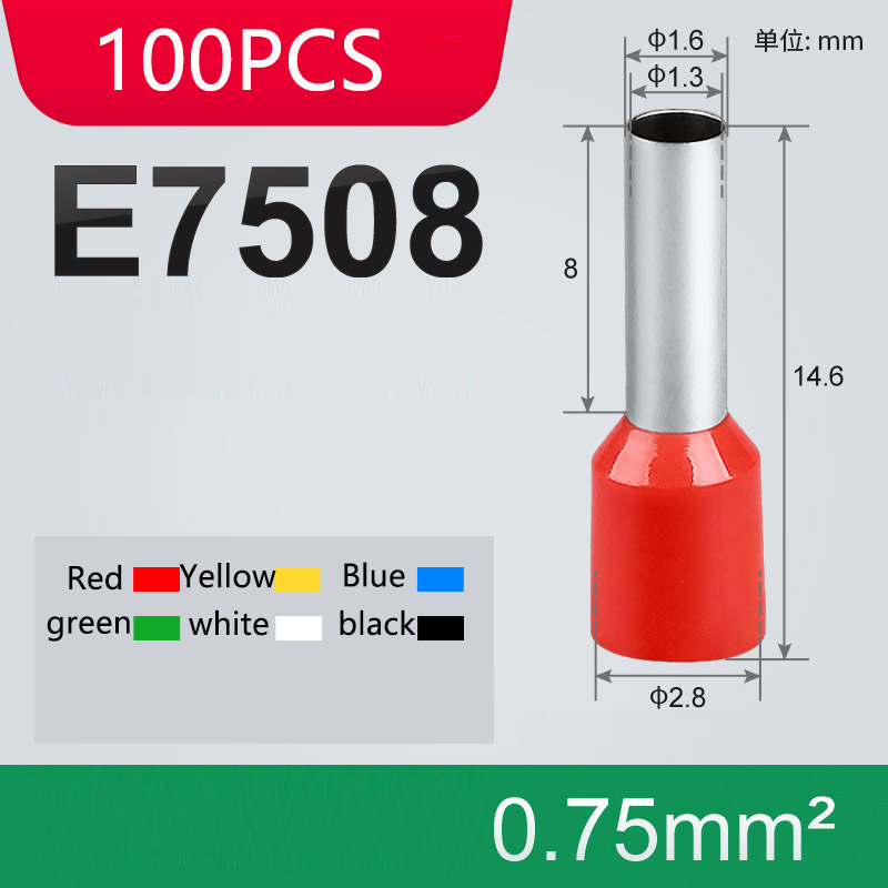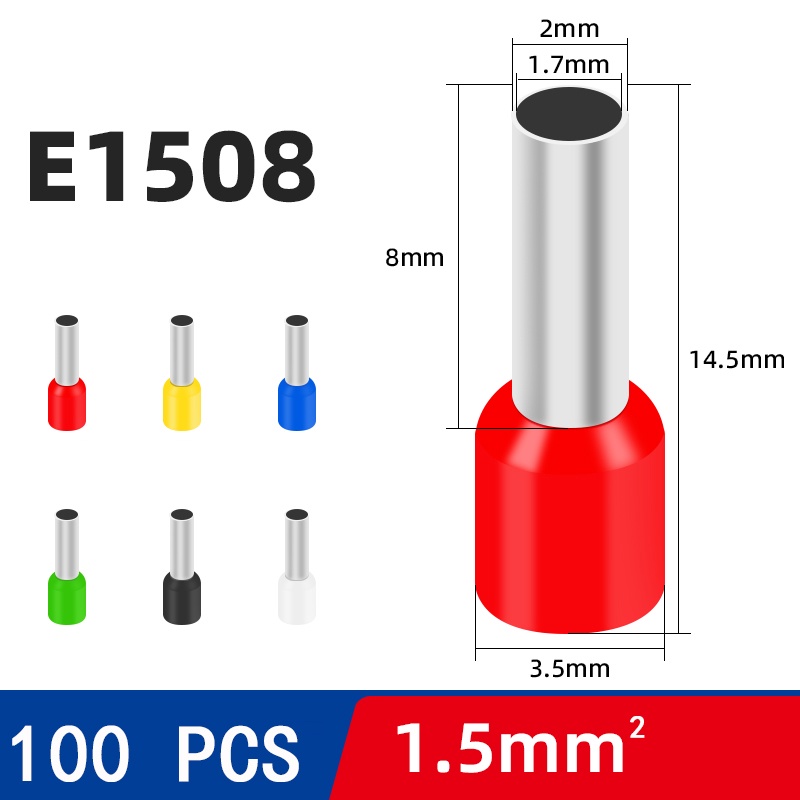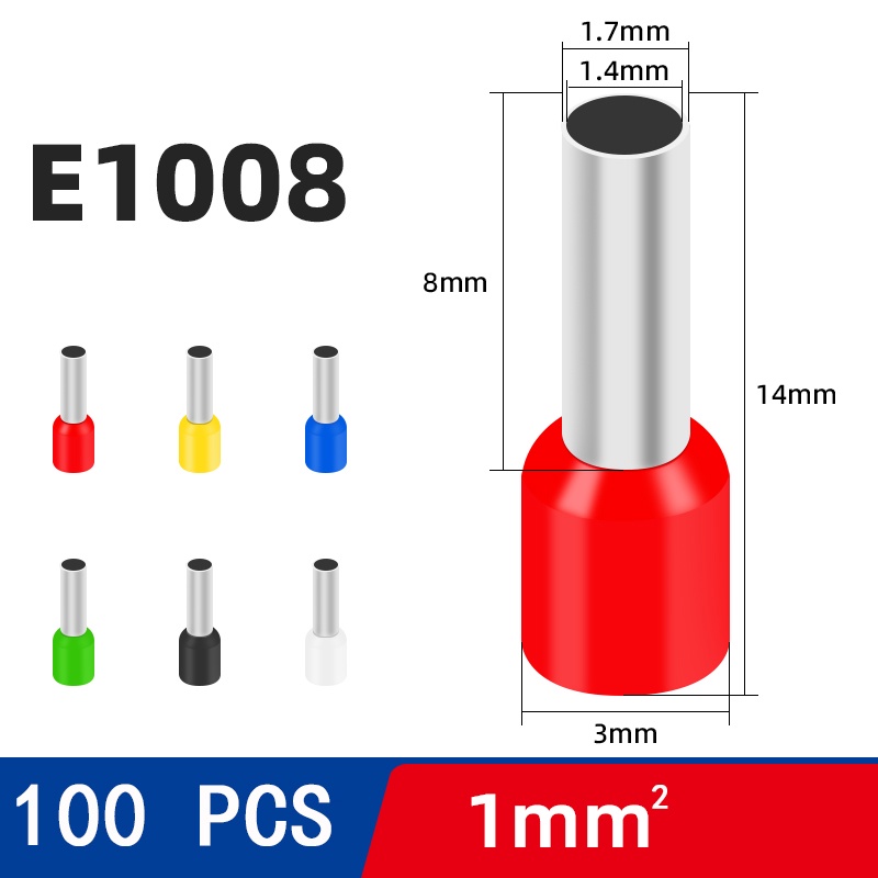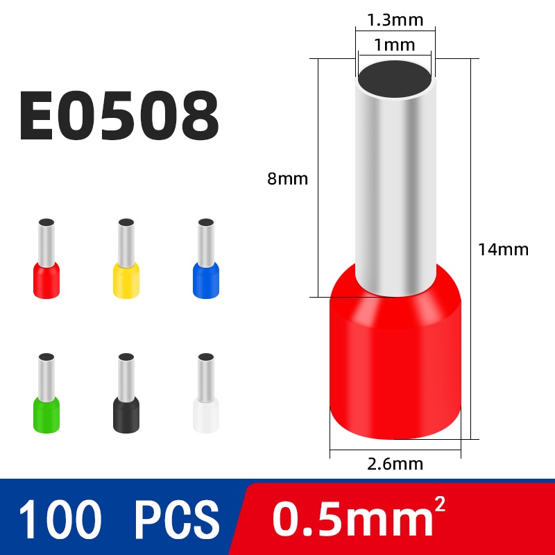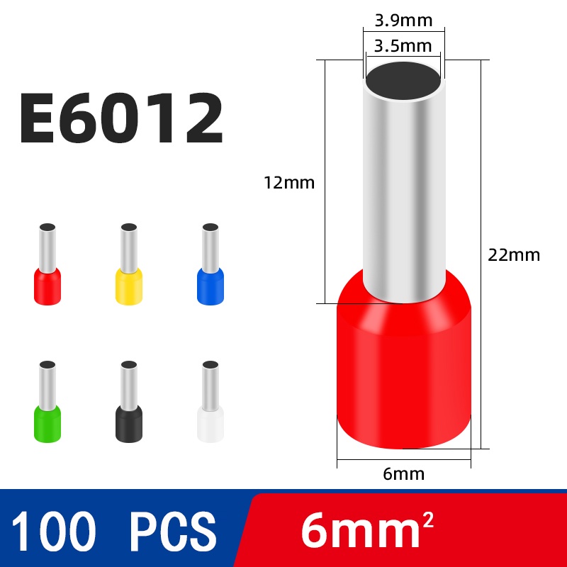 6 Color Pin Terminal E1008 / E0508 / E1508 /E2508 /E4012 /e6012 Tube Terminal Cold Pressed Wire Nose Pin Terminal