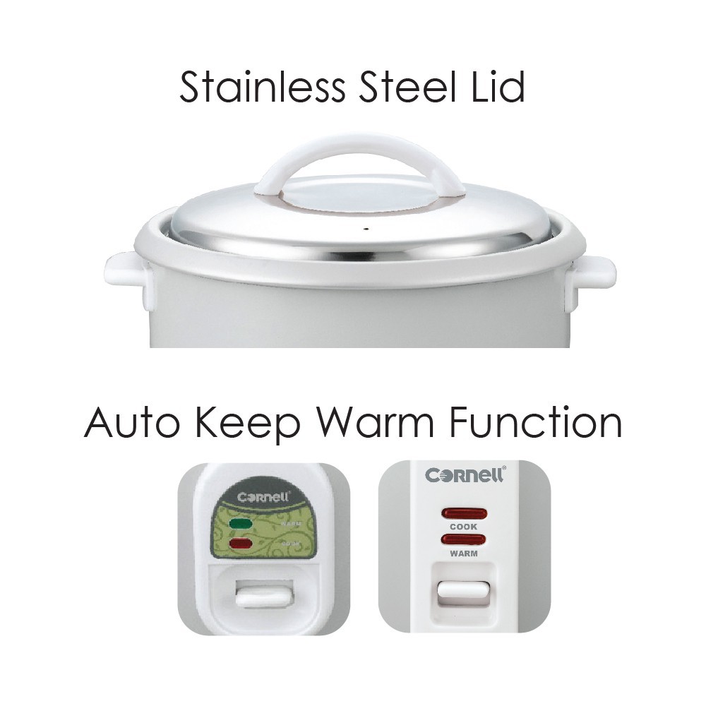 Cornell Rice Cooker 2.8L CRC-CS128GY Aluminium inner Post, Keep Warm Junction | Cornell Periuk Nasi 2.8L