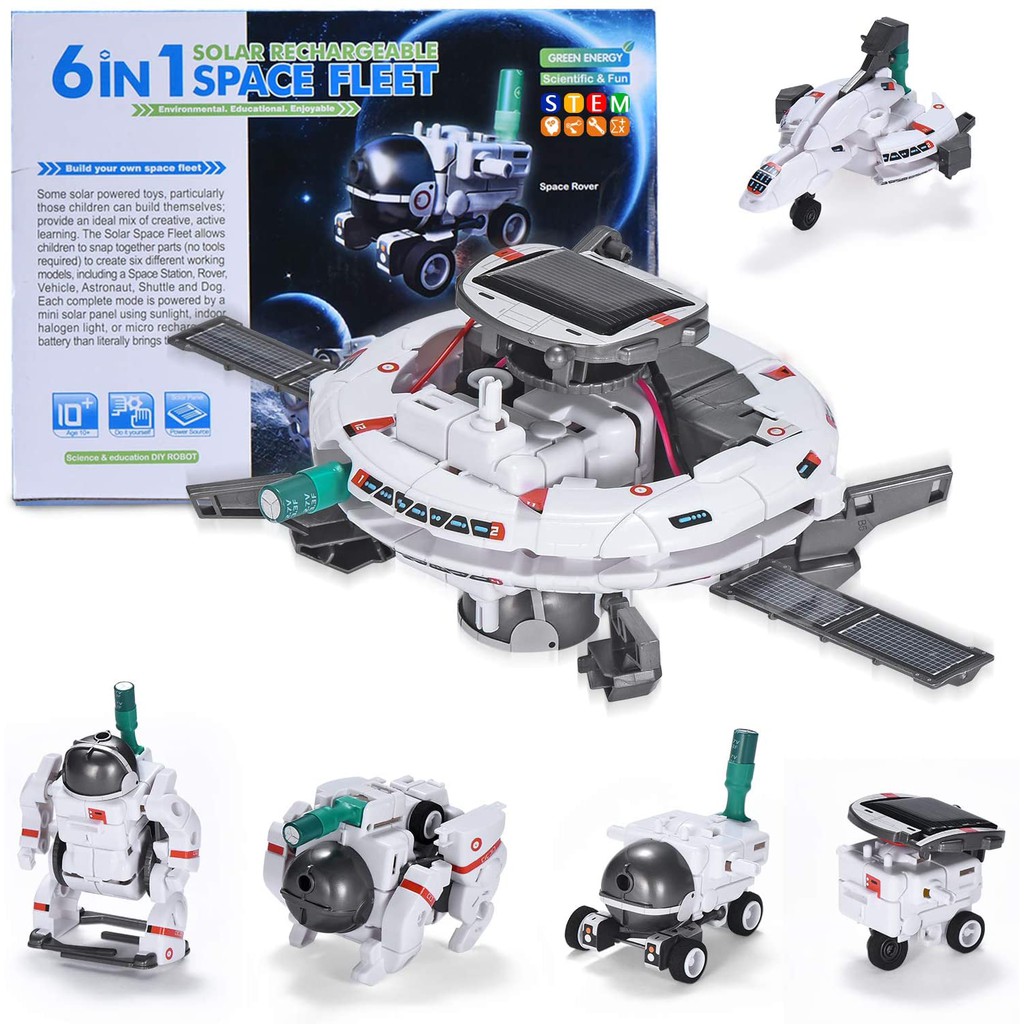 6 In 1 Solar Rechargeable Space Fleet - Educational DIY Kit Solar Robot For Kids, Children, Boys & Girls