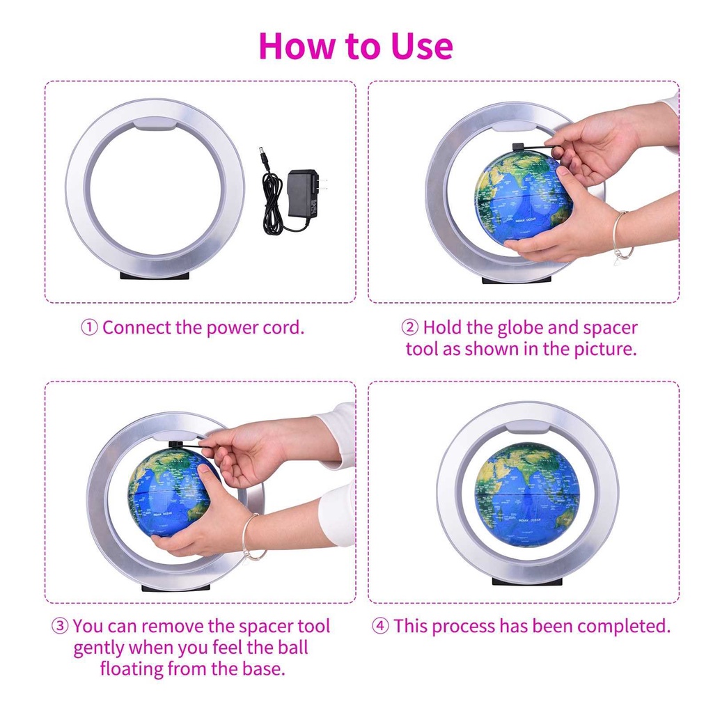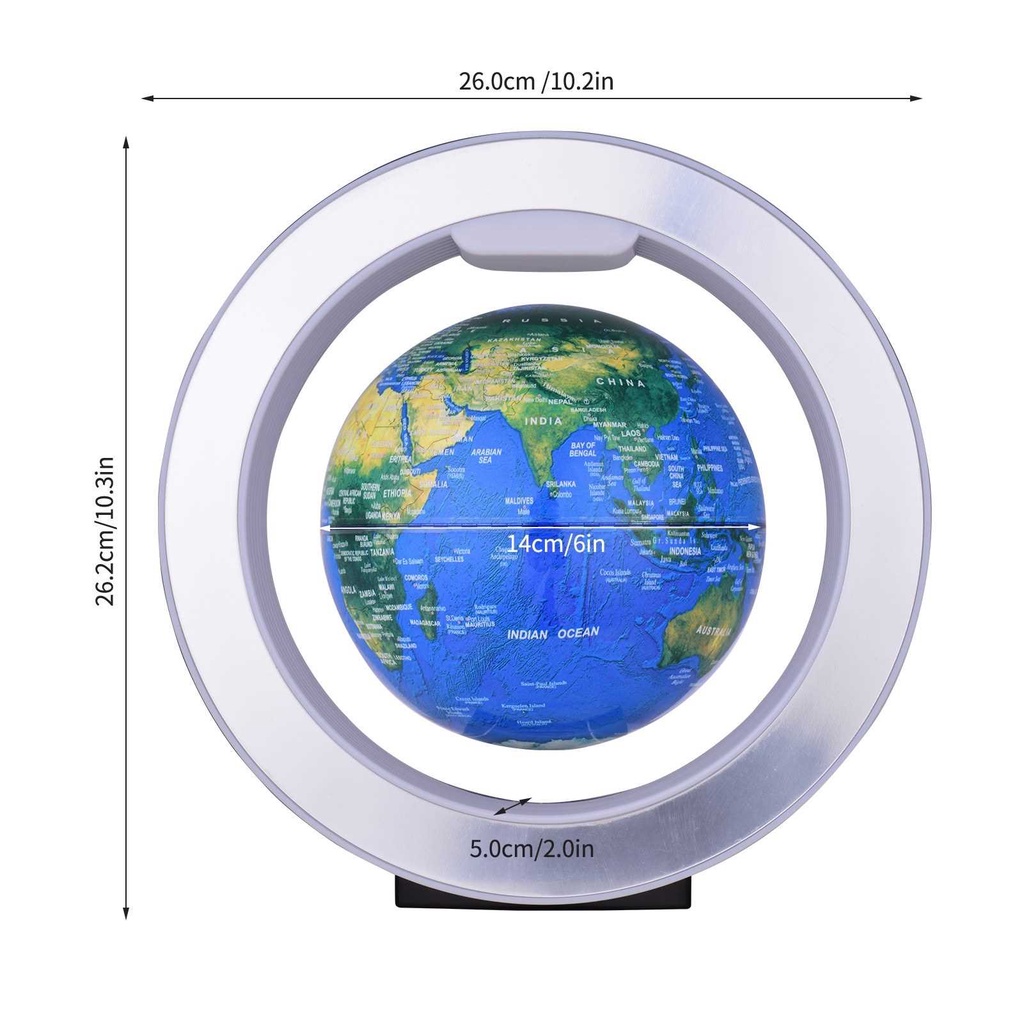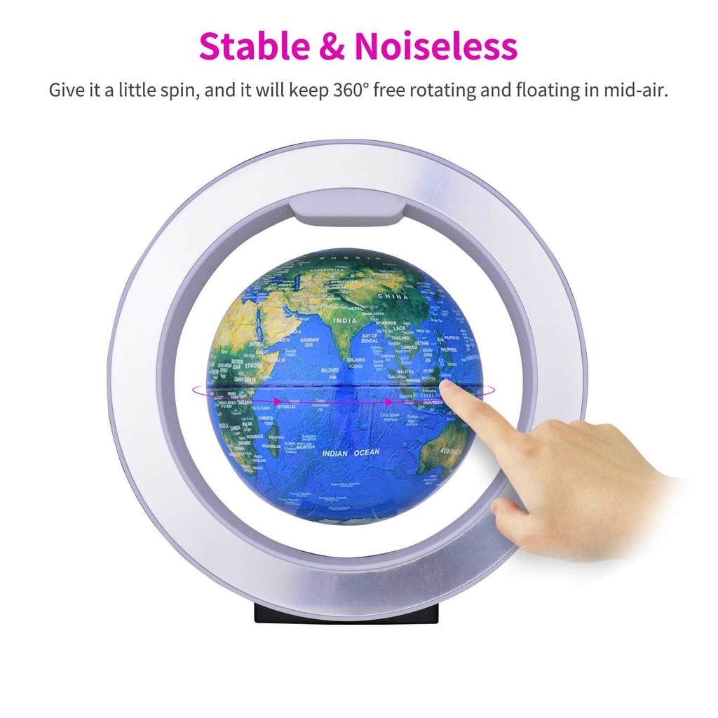 6 Inch Magnetic Leviation Floating Globe Anti Gravity Rotating Earth Ball Levitating World Map Globe with Colorful LED