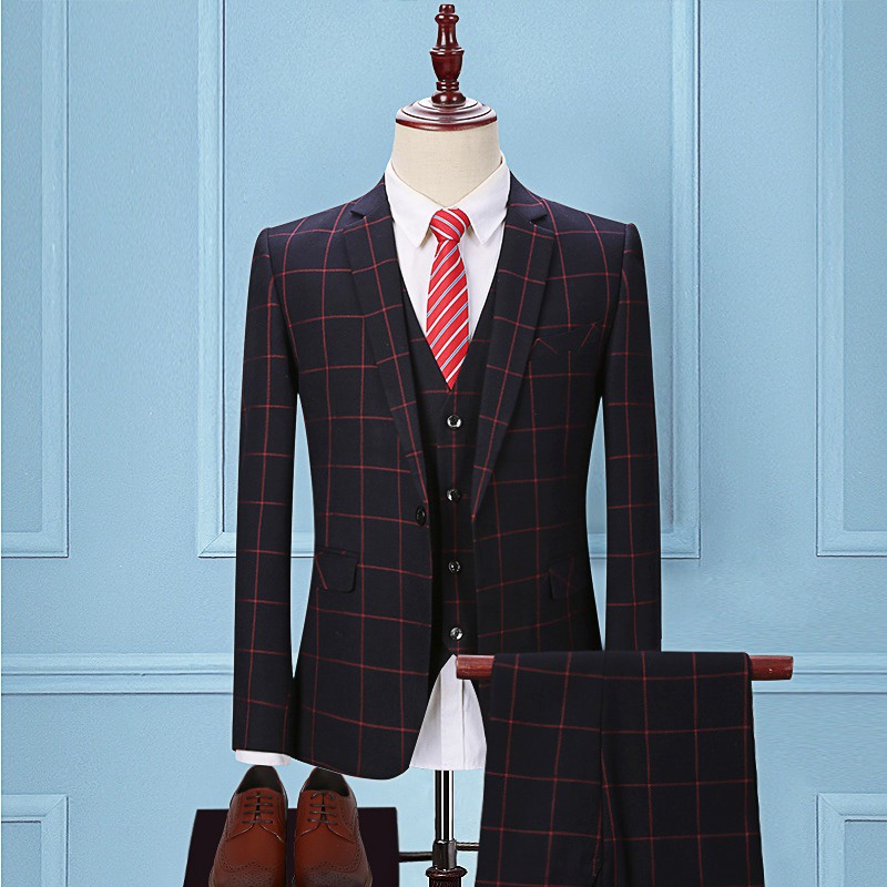Set Blazer Lelaki Slimfit Kotak-Kotak 6-dalam-1 – Kualiti Tinggi untuk Perkahwinan & Perniagaan