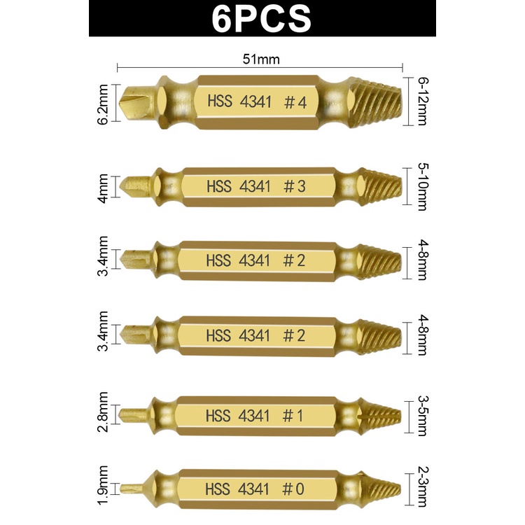 6 Pcs Damaged Screw Extractor Drill Bit Set Broken Head Screw Bolt Remover Tools Screw Remover Set Remove Damage Screw