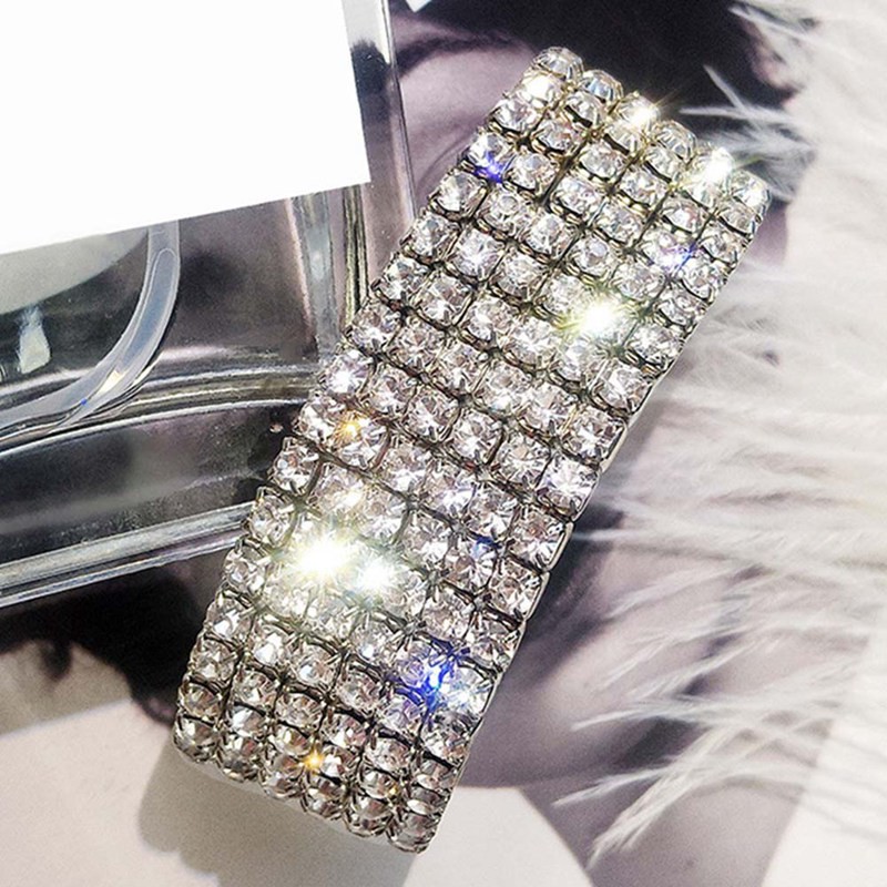 6 Rows Crystal Rhinestone Bangle Bracelet Wedding Bridal Wide Crystal Stretch Bracelet For Women