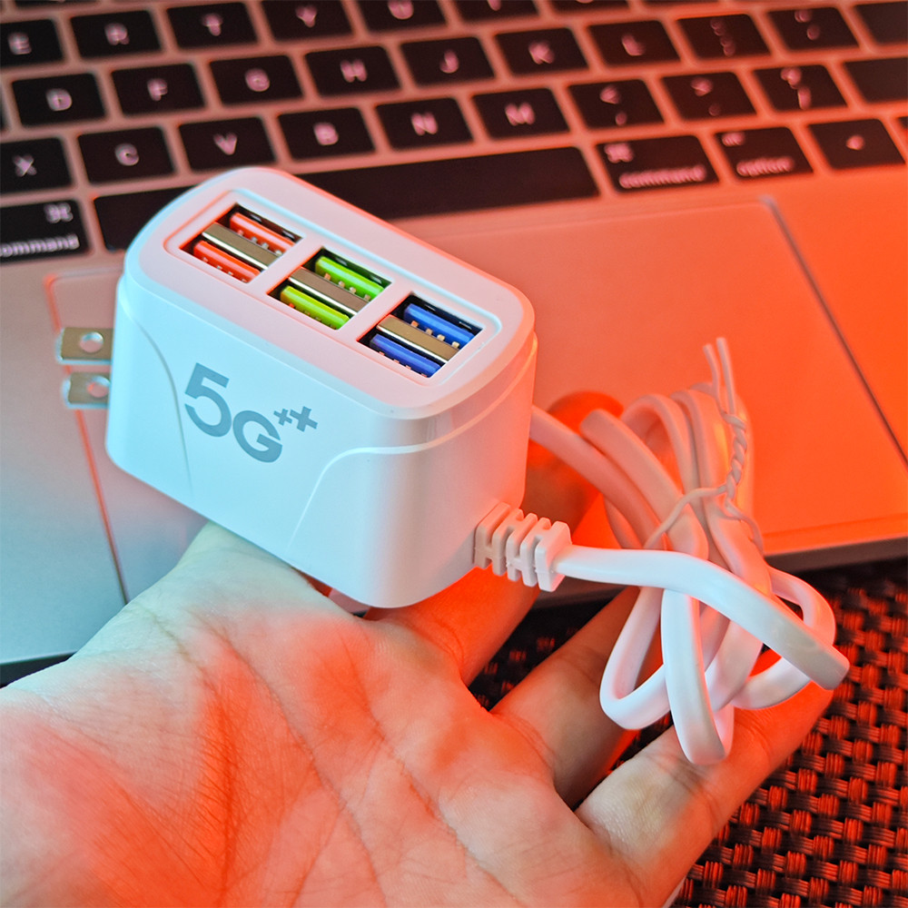 6 in 1 12W USB Socket Plug-in charger - US/EU 3.1A Charging Head Adaptor - Safty Charger Station Splitter Extension - 6 Ports Plug Power Strip Charger