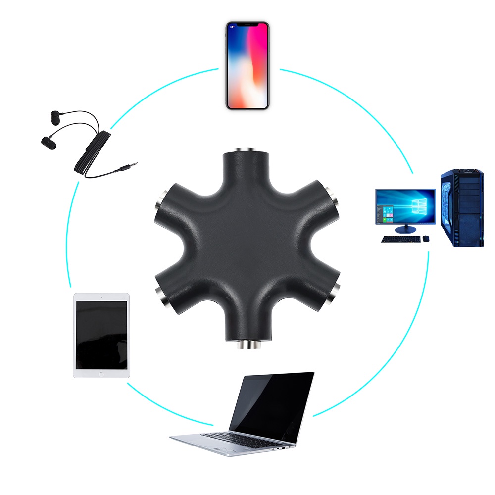 6 in 1 Audio Aux Cable Splitter / 1 Male to 5 Female Headphone Port 3.5mm Jack Share Adapter / for Tablet MP3 MP4 Mobile Phone