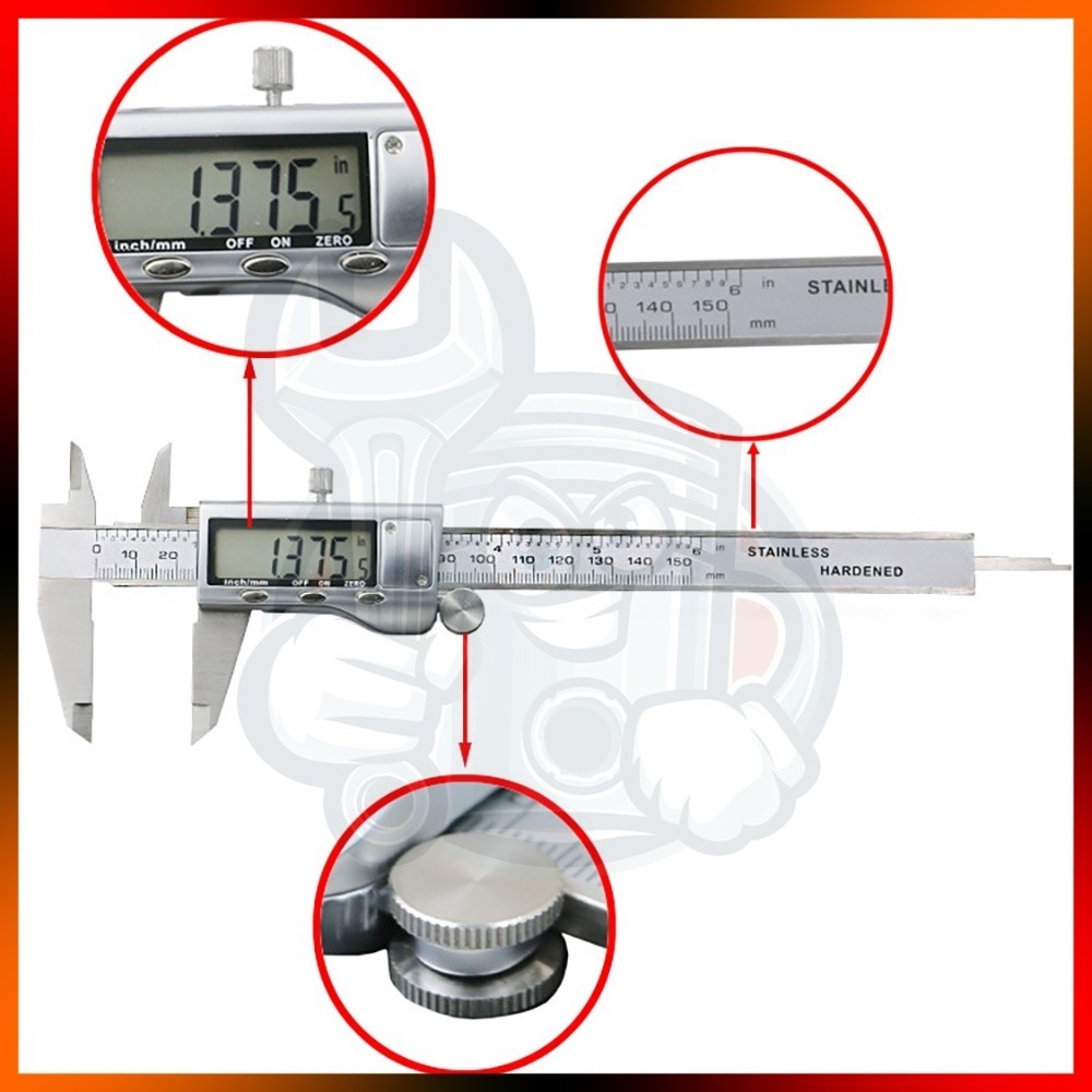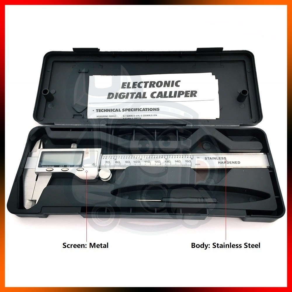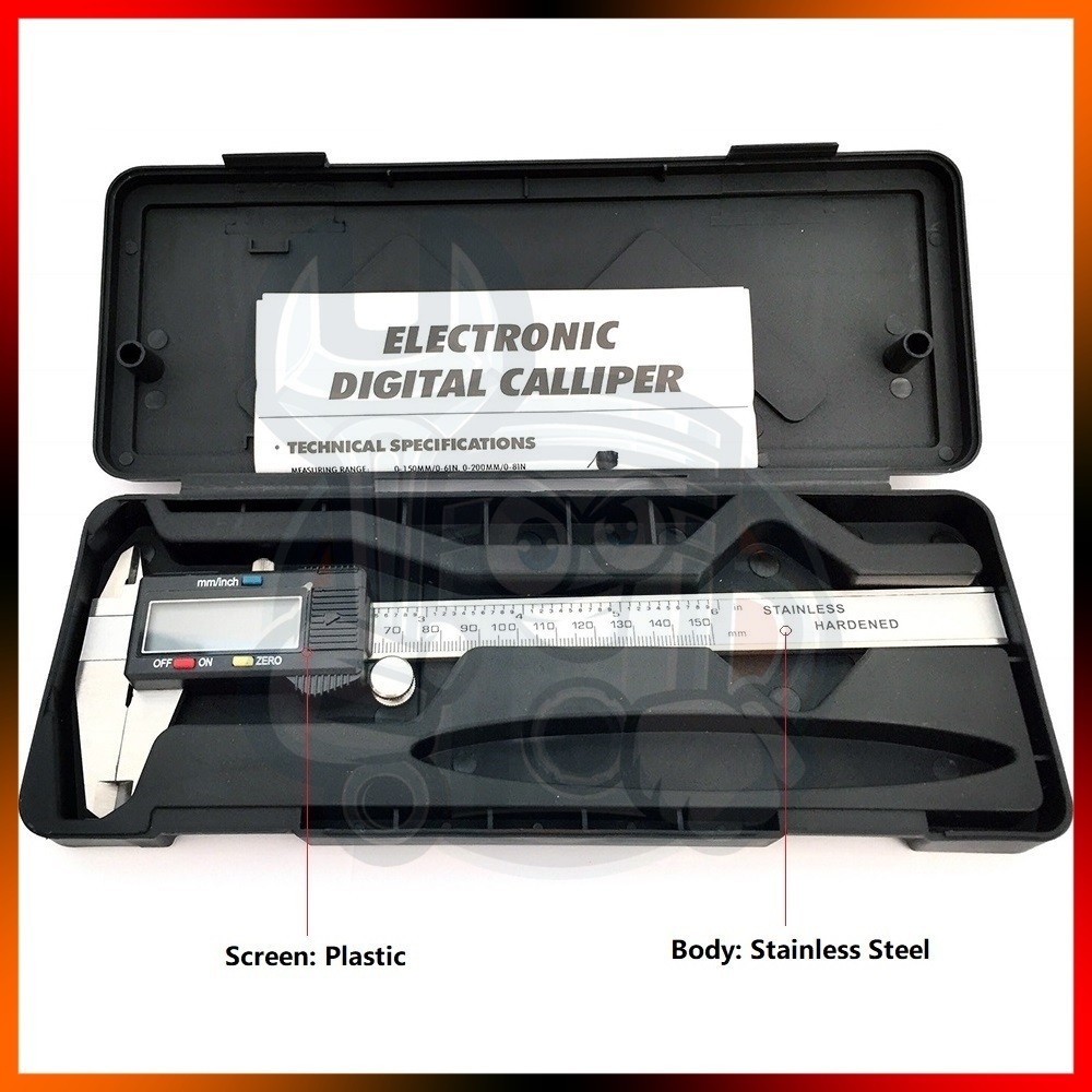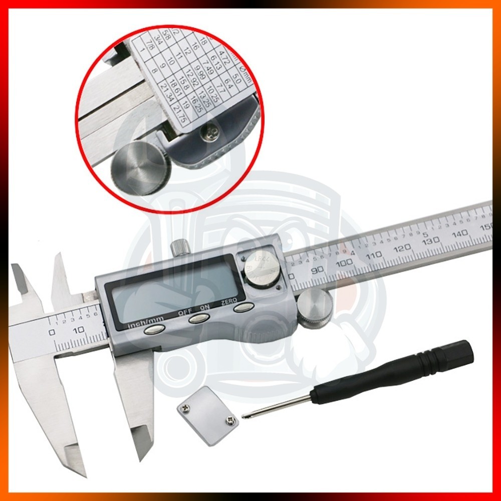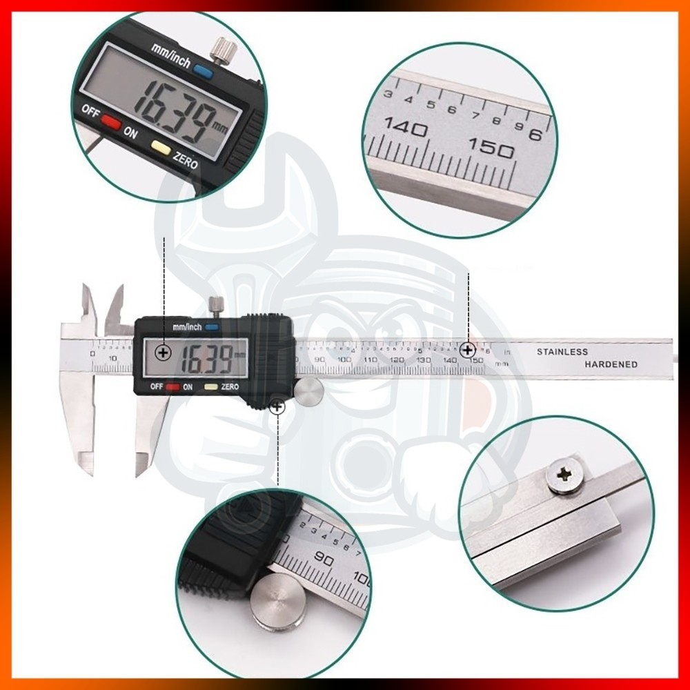 6"inch 150mm Digital Caliper Stainless Steel LCD Digital Vernier Caliper Measurement Tool Included Battery