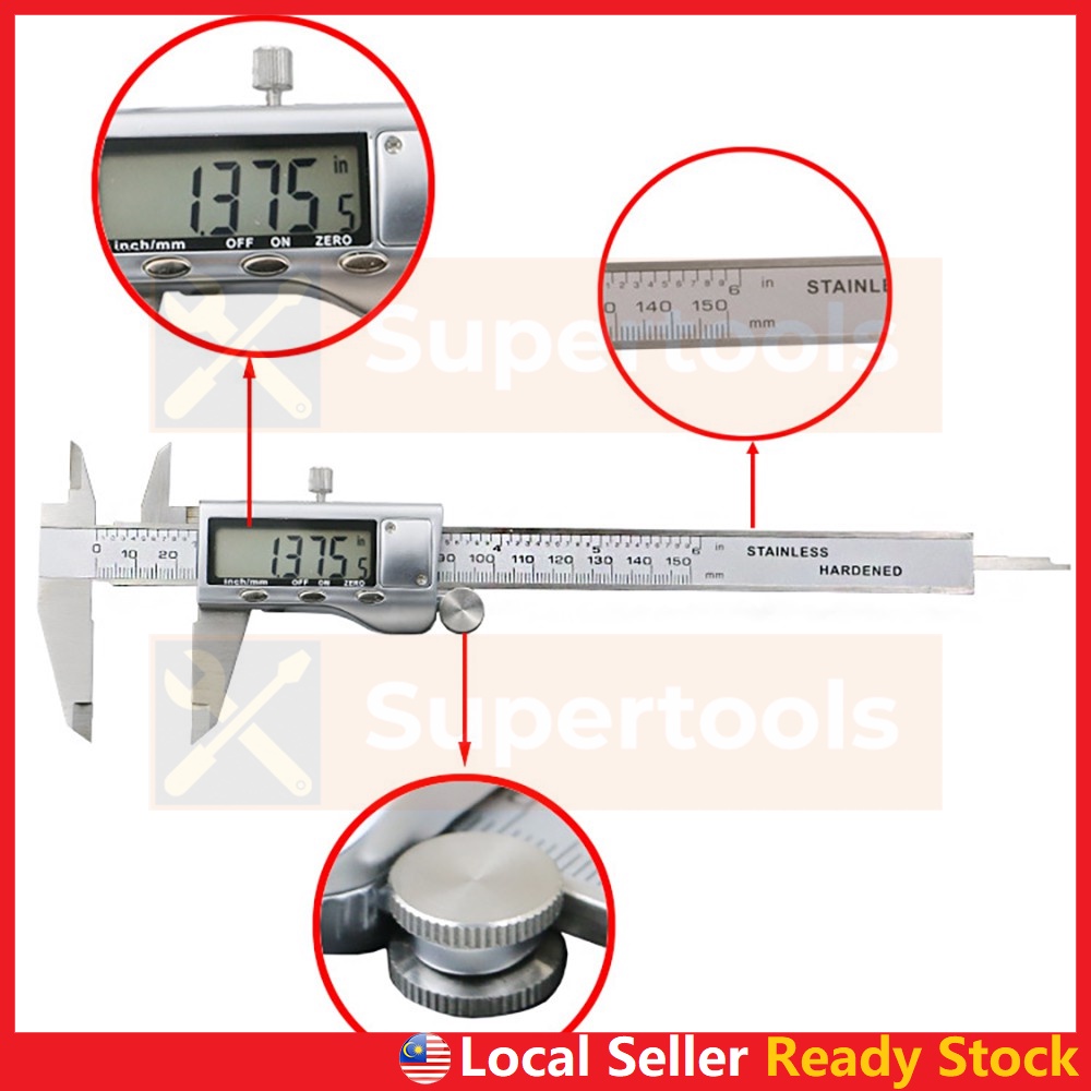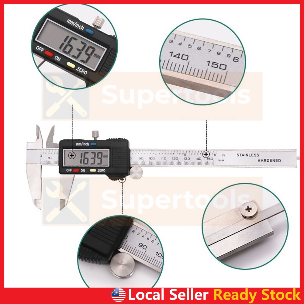 6"inch 150mm Digital Caliper Stainless Steel or Plastic LCD Digital Vernier Caliper Measurement Tool Included Battery