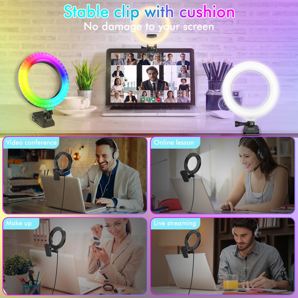Tiktok RGB Ring Light for Laptop Computer Desktop Colorful Selfie Live Streaming Fill Light Holder Clip On 直播灯