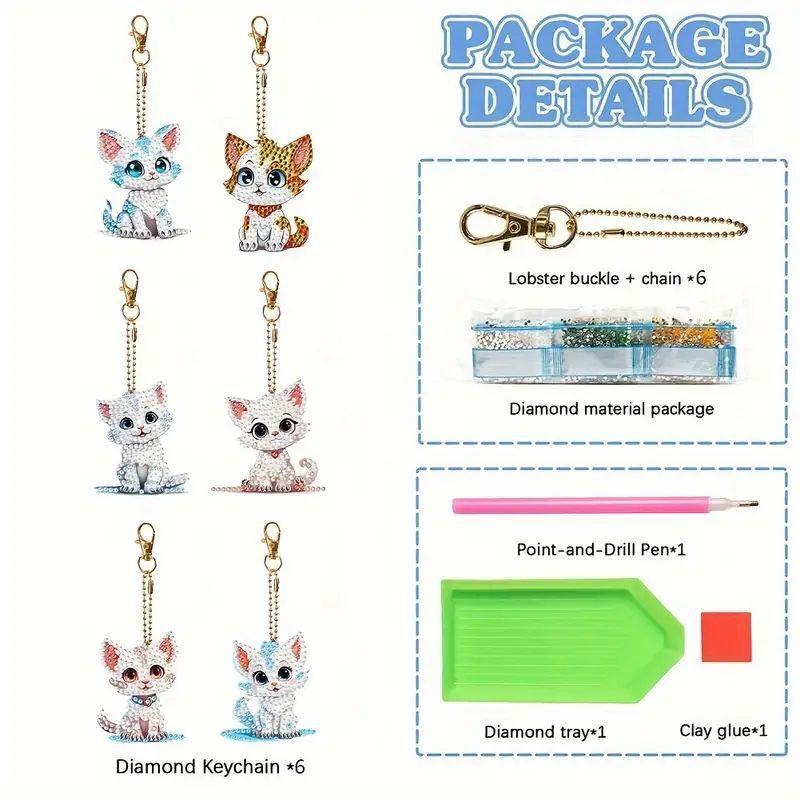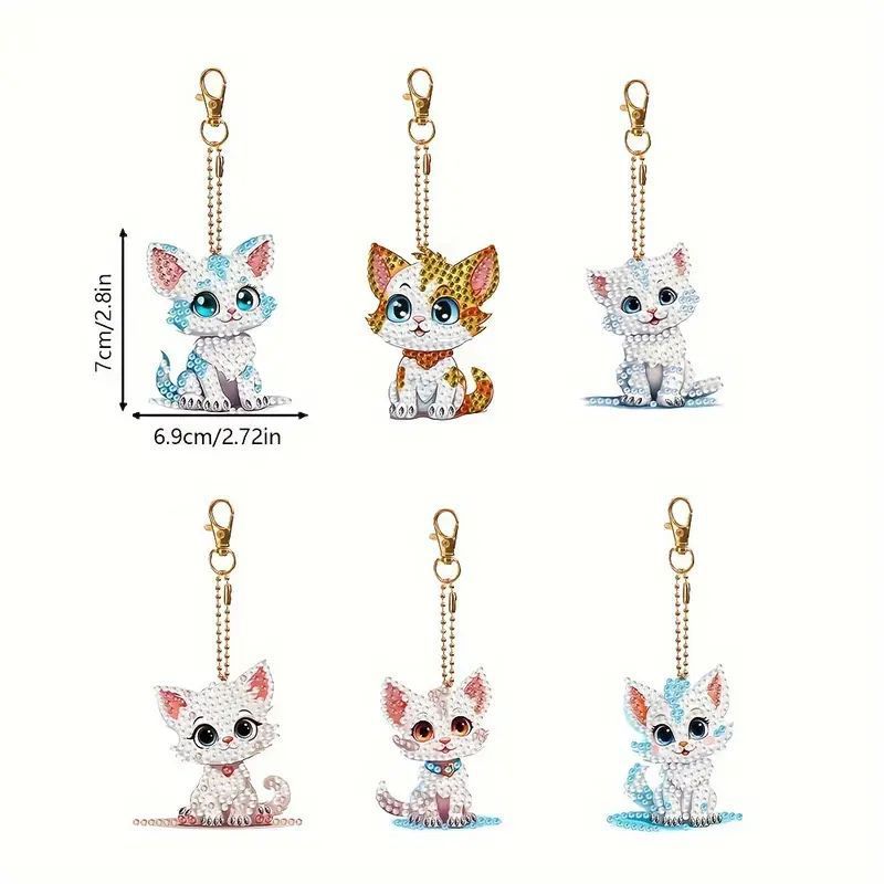 6-pack DIY diamond painting keychain kit, animal diamond art mosaic keychain, backpack pendant, handmade gift for beginners, birthday home party decoration