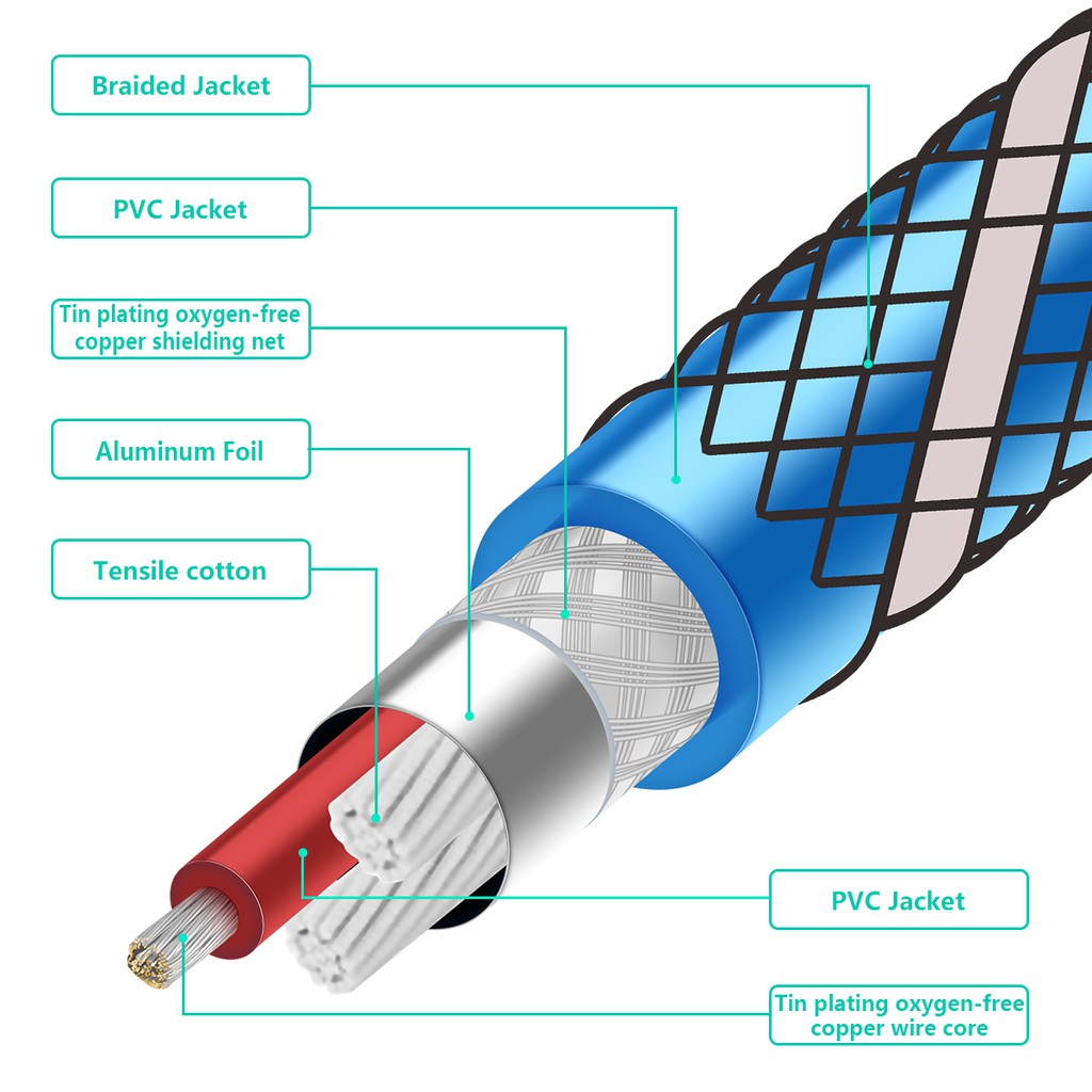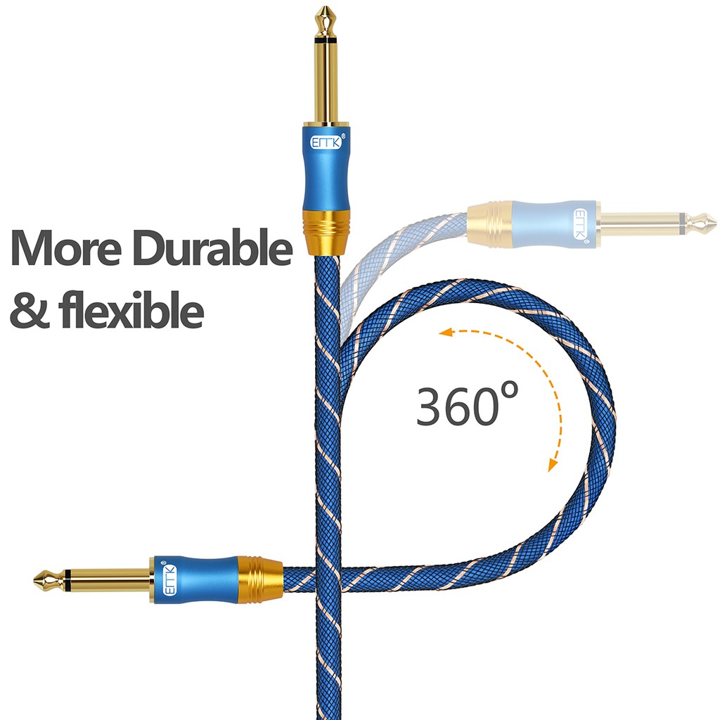 6.5 Jack Audio Cable 6.3 Aux Cable Nylon Braided 6.35 Jack Male to Male cord mono guitar Cable 10m for Mixer Amplifier