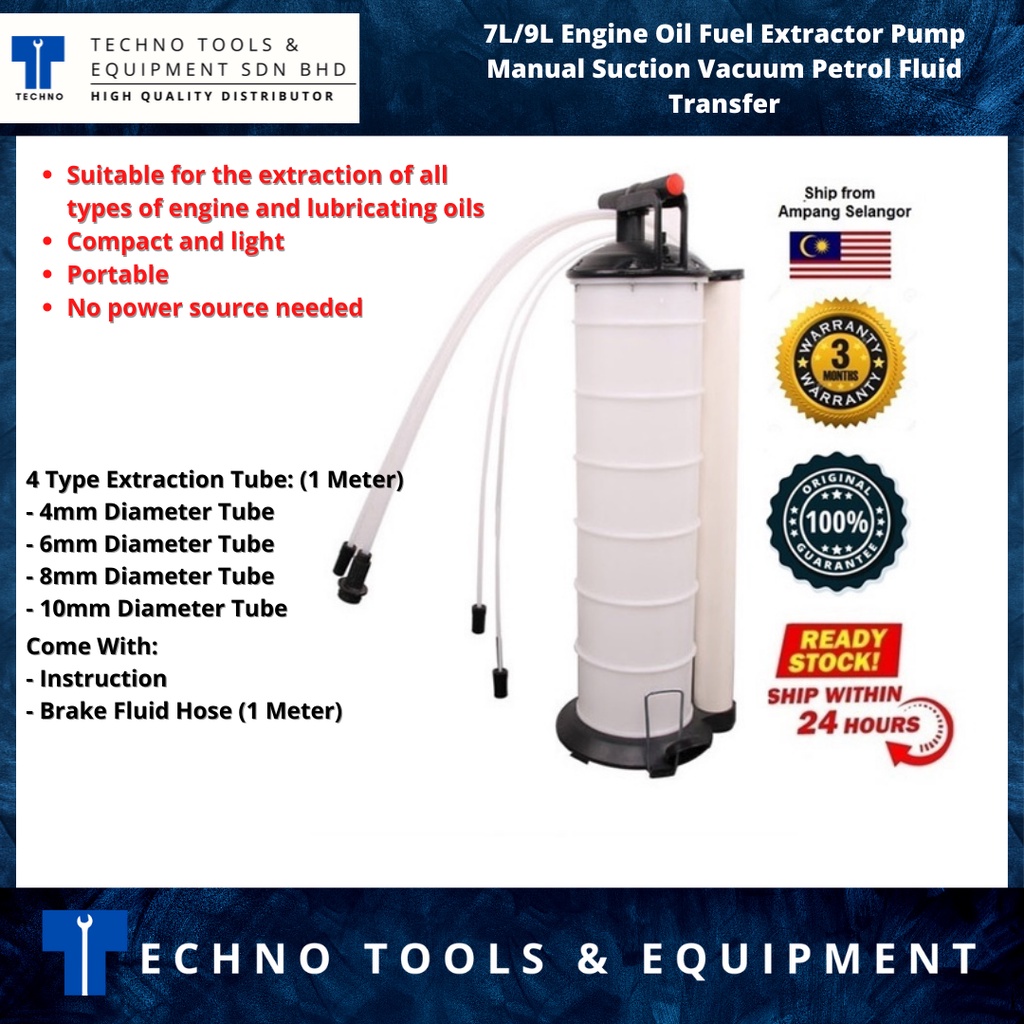 6.5L/7L/9L Engine Oil Fuel Extractor Pump Manual Suction Vacuum Petrol Fluid Transfer - 100% Brand New