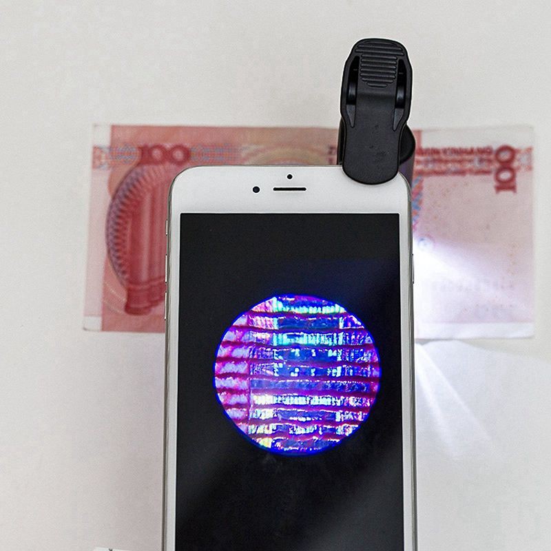 60-100X Zoom Microscope Magnifier UV Light Clip-on Micro Lens Mobile Phone