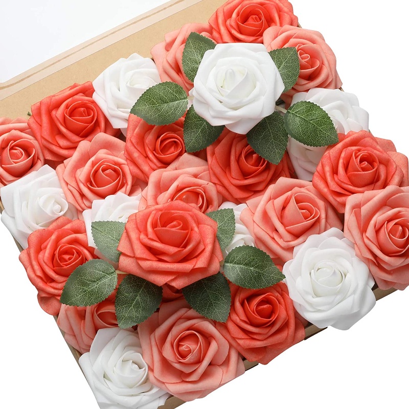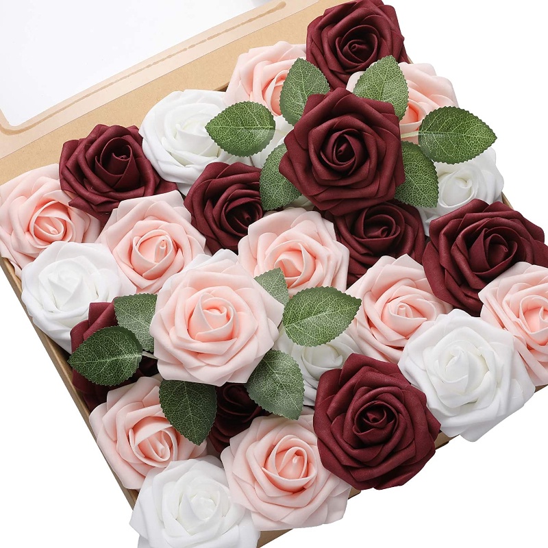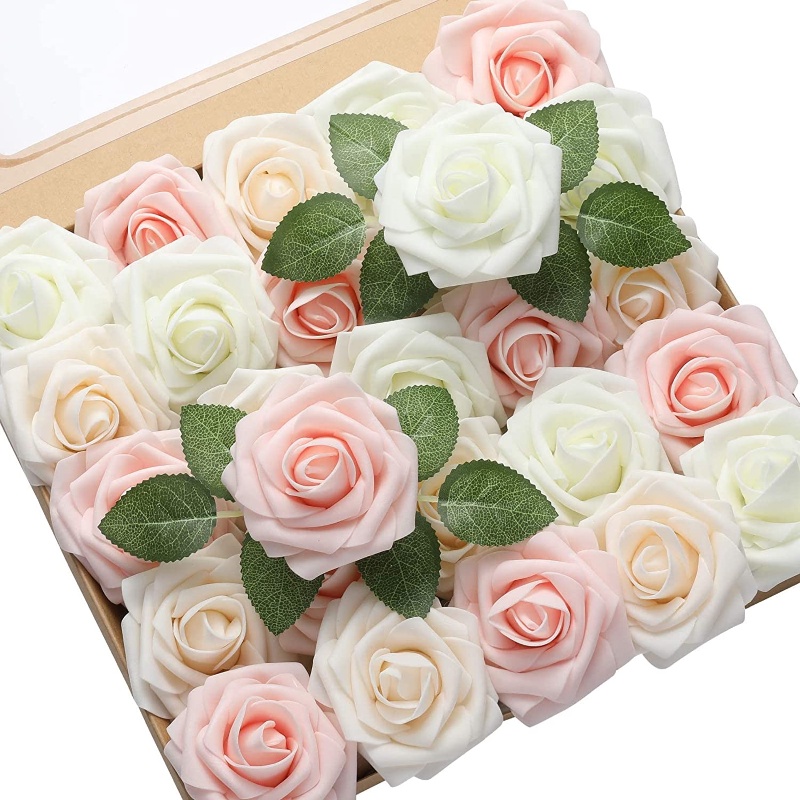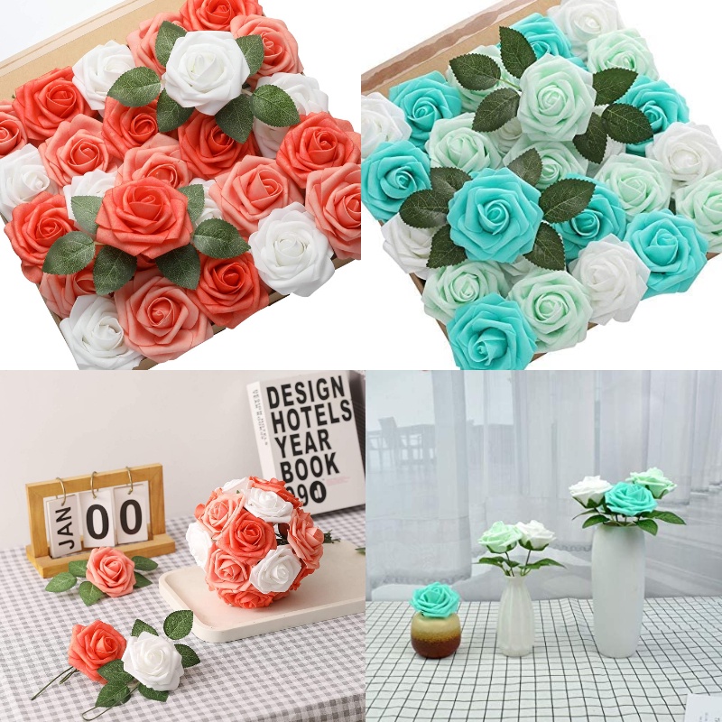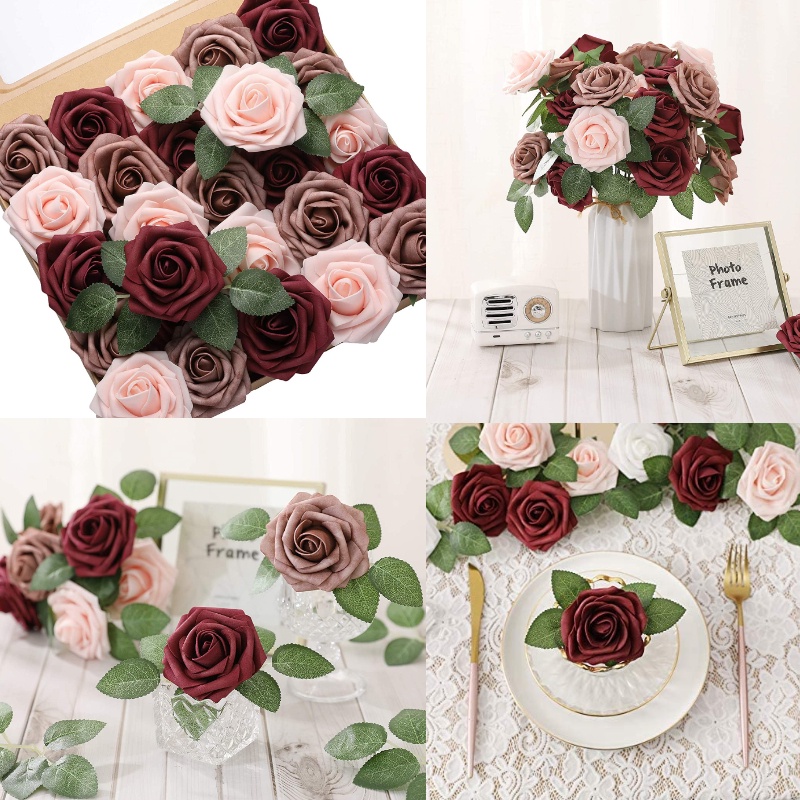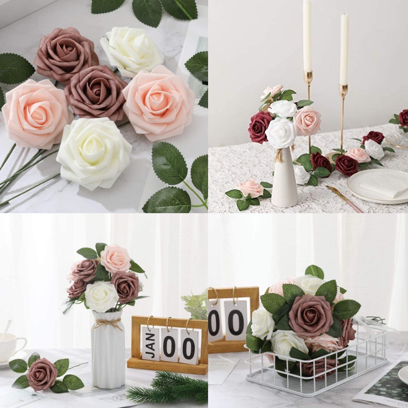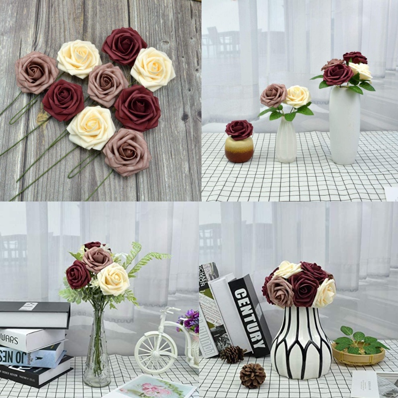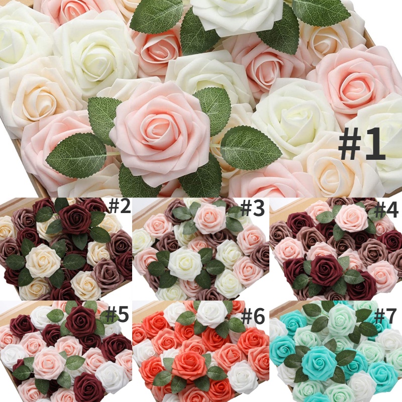 60/30pcs/set of flower head with stem artificial rose artificial rose decoration DIY wedding bouquet, arrangement party baby shower home decoration 3 color set of finished product
