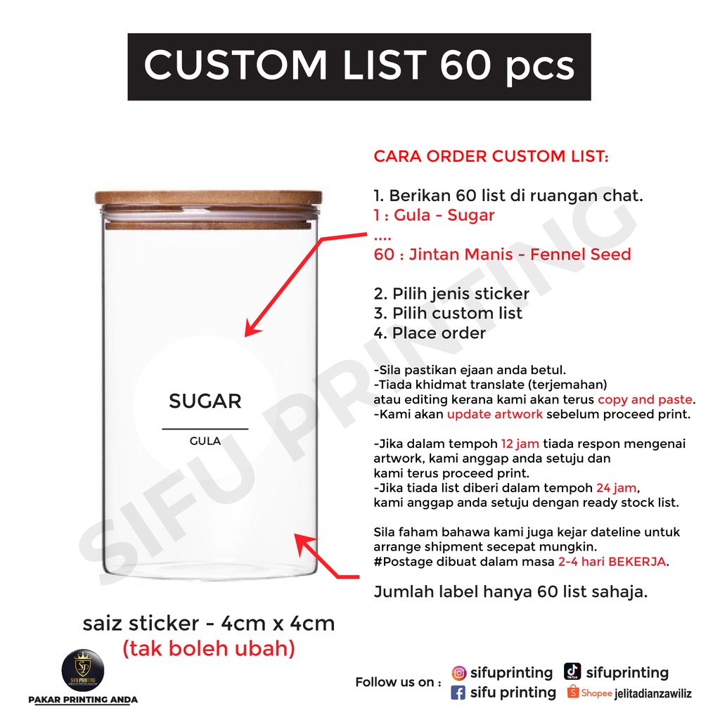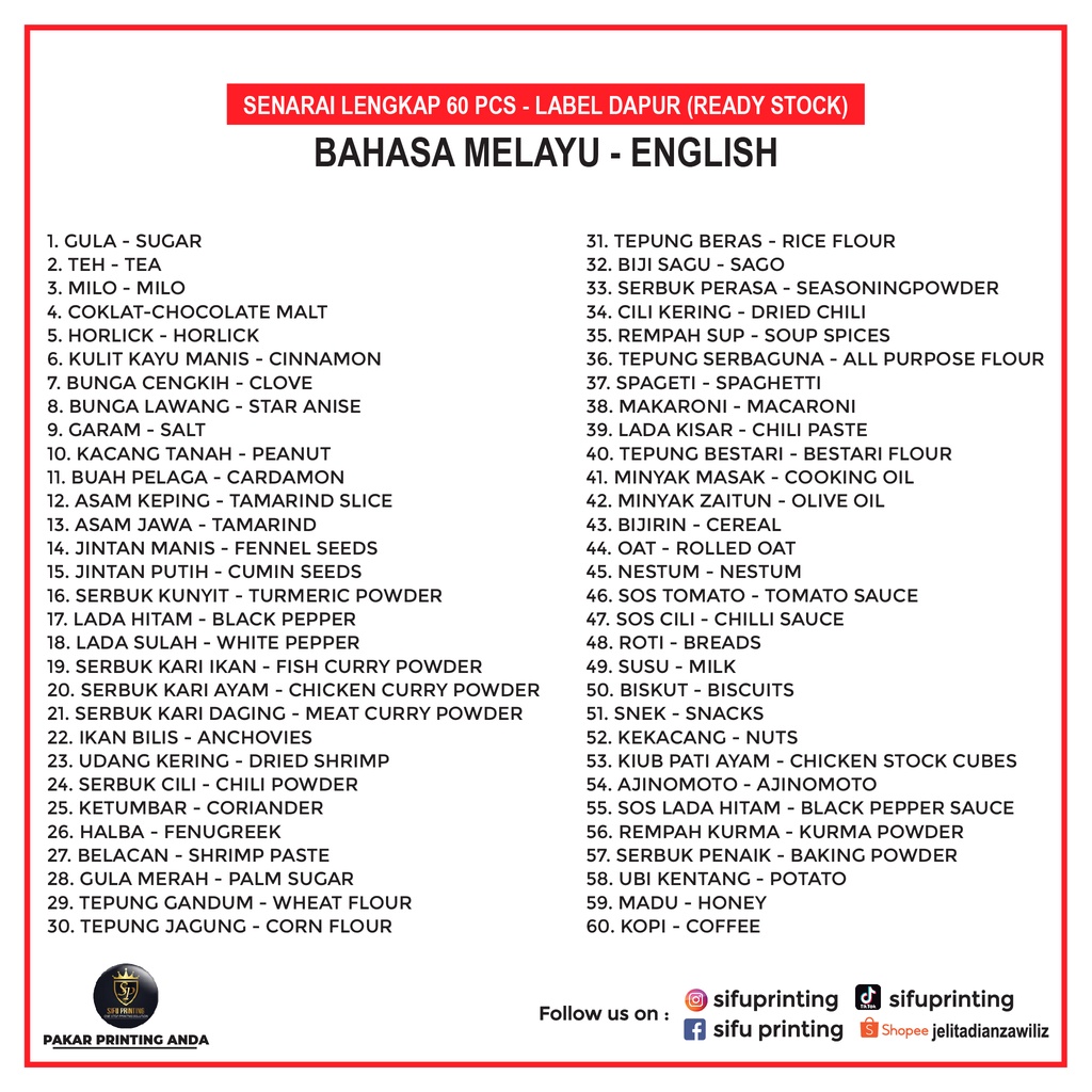 60 List Sticker Dapur Minimalist | Sticker Bulat | 4cm x 4cm | Sticker Rempah Murah | Waterproof Sticker