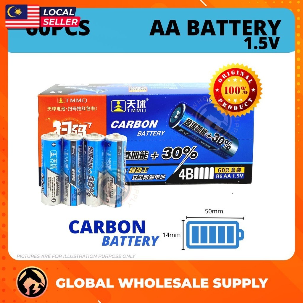 60 PCS 1.5V AA / AAA Battery Carbon Battery Bateri Tahan Lama Remote Control Mouse Keyboard Battery Torchlight