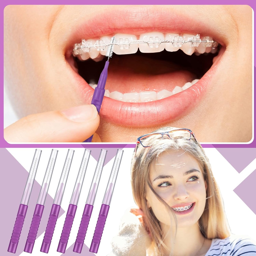 60 Pcs Braces Brushes for Cleaner Interdental Brush Toothpicks Teeth Cleaning Soft Flossing Heads Floss Dental Tools Braces Flossers Tooth Picks Flossers with Bristles, 6 Sizes