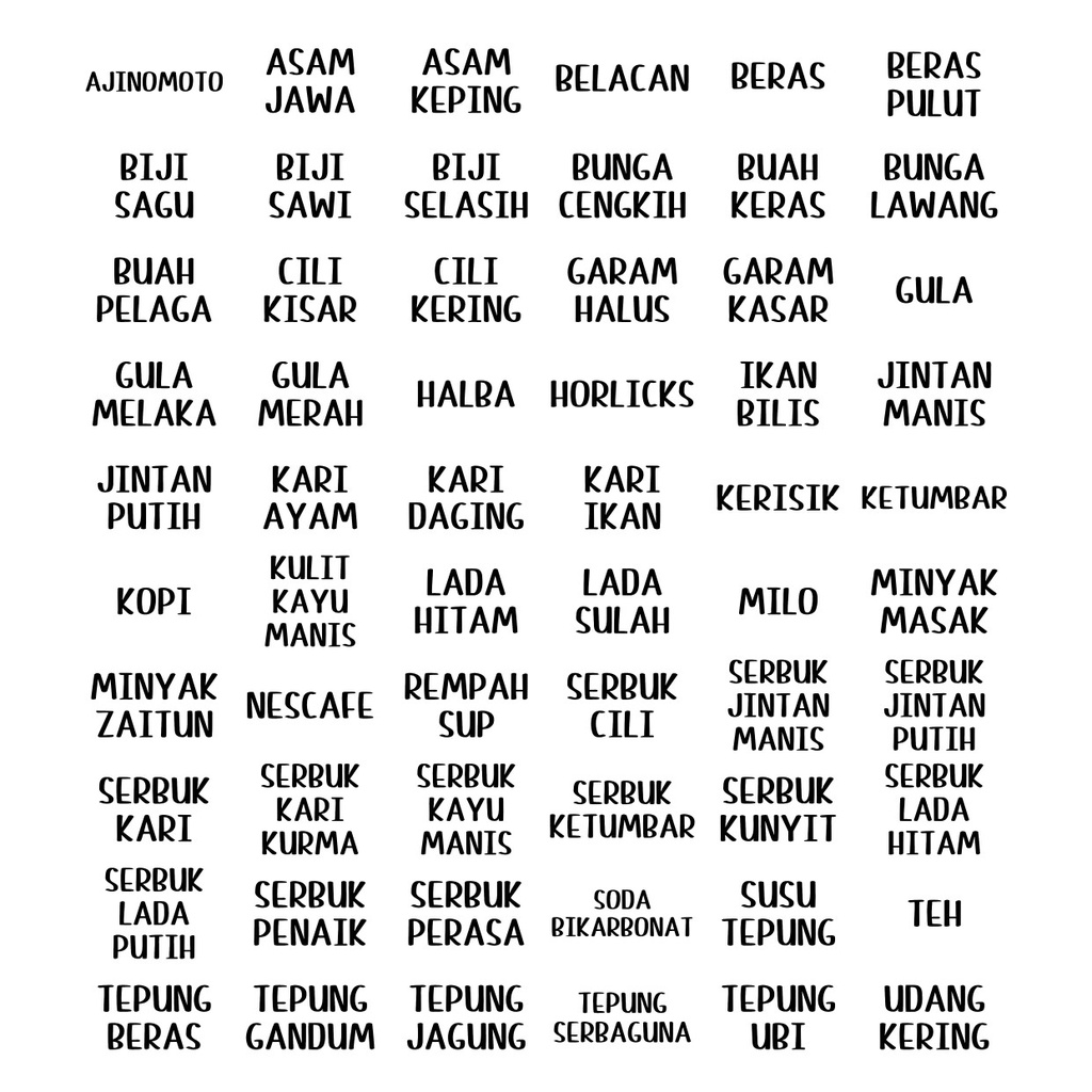 60 pcs Sticker Transparent/Mirrorcoat Label Barang Dapur, Rempah Ratus