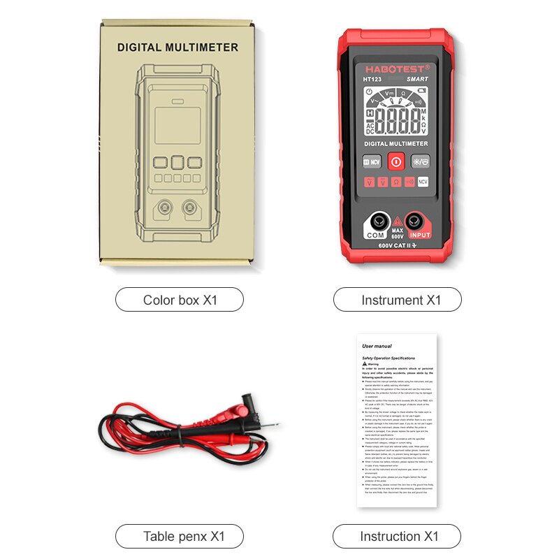 600V Smart Mini Digital Multimeter Auto Ranging AC/DC Voltage Voltmeter Ammeter Resistance Continuity NCV Non-contact Multimeter