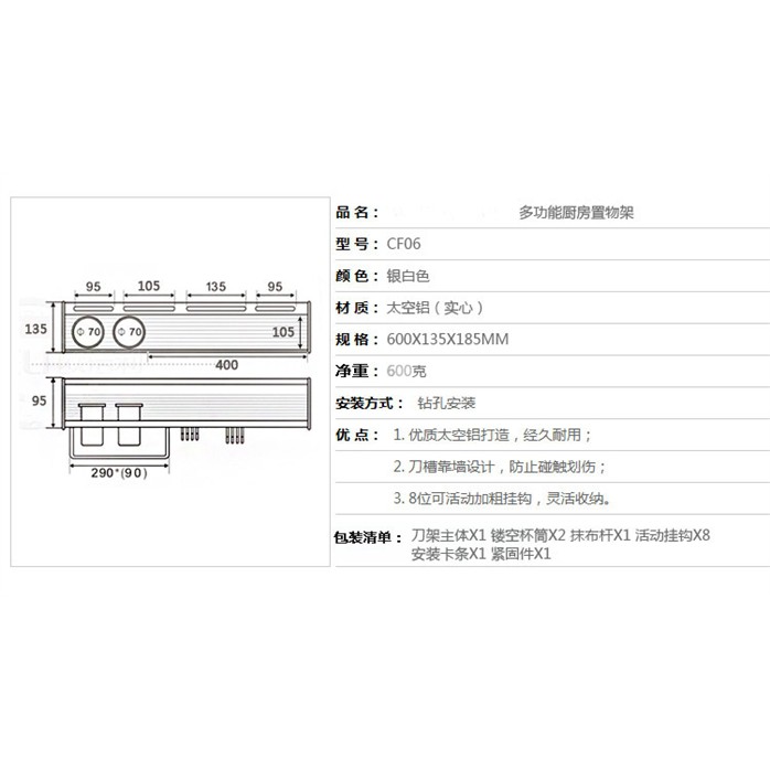 600mm Space aluminum Kitchen Sheft