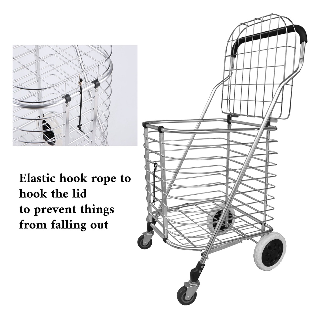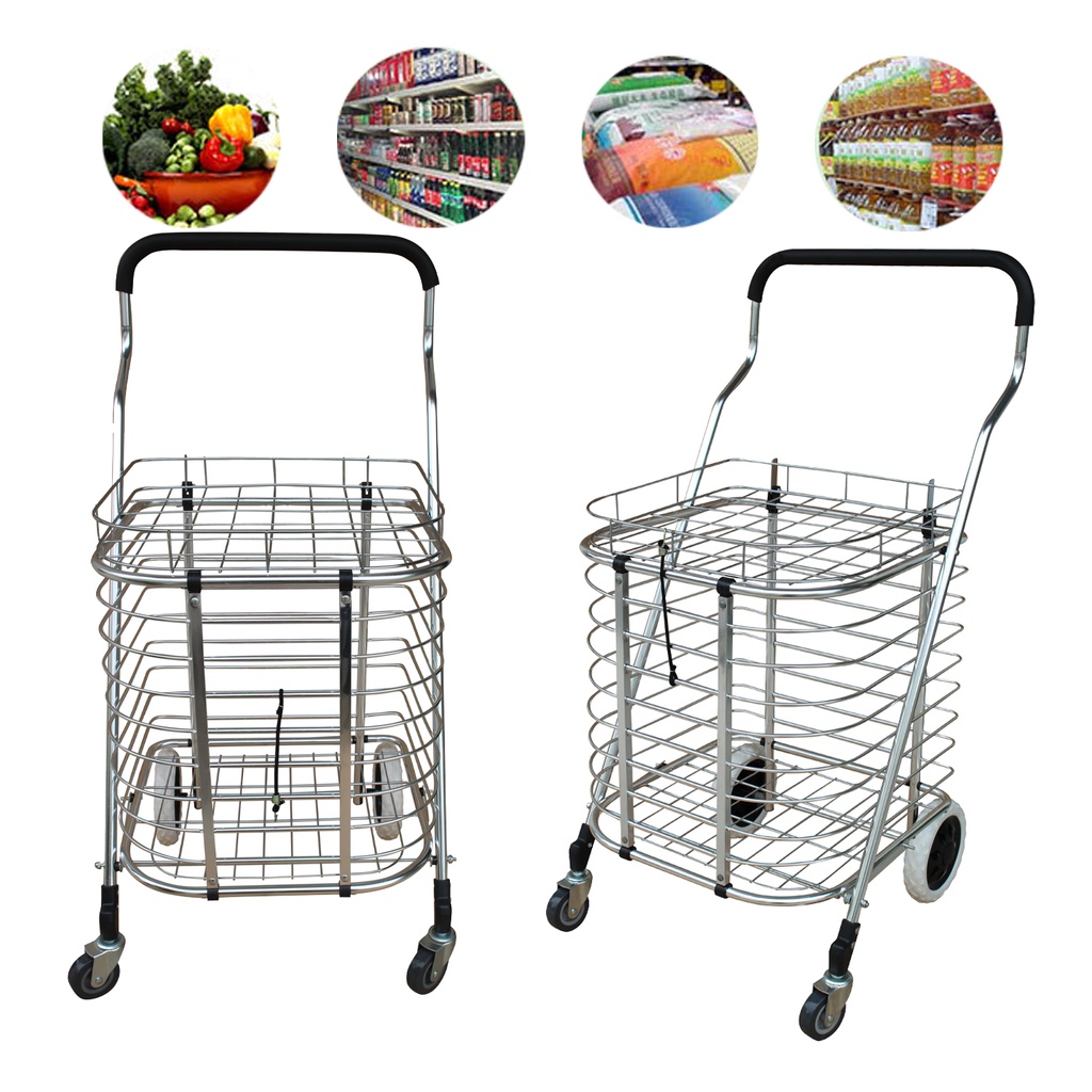 604 Shopping Cart Trolley w/Lit Foldable Folding Grocery Shopping 4 Wheel Space Saving Large Capacity Portable