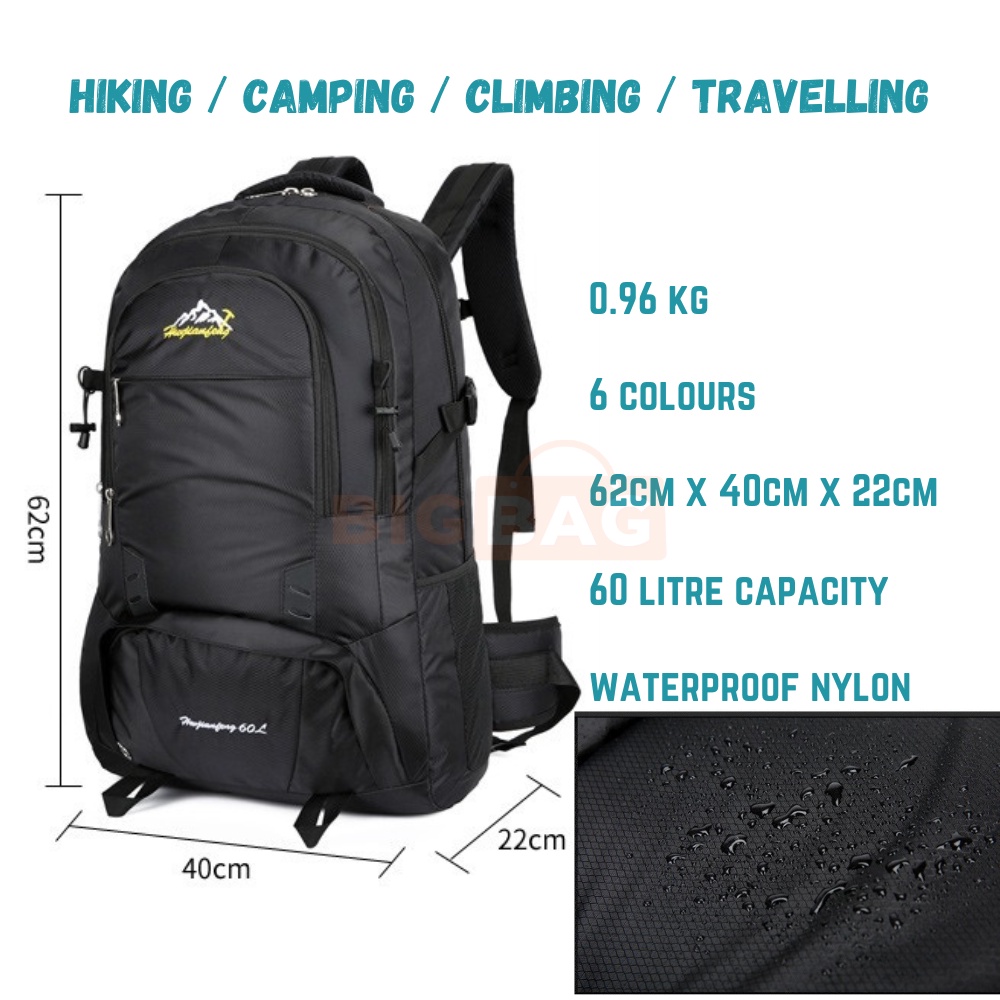 60L Premium Travel Bagpack Waterproof Backpack Hiking Bag Pack Travel Beg Galas Belakang Beg Hiking Backpack Camping Bag