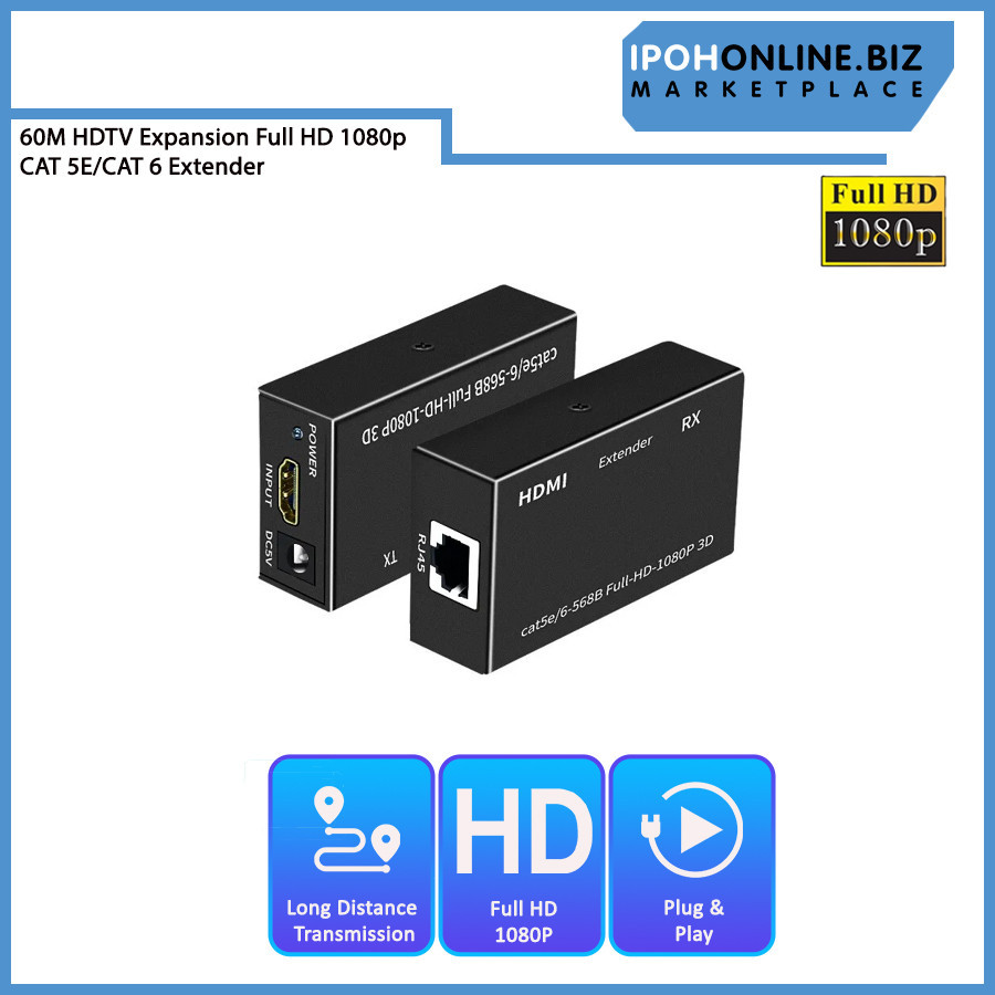 60M CAT5E CAT6 HDMI Extender Repeater LAN CAT 5E/CAT 6 Cable 3D Video Expansion Full HD1080P UK PLUG