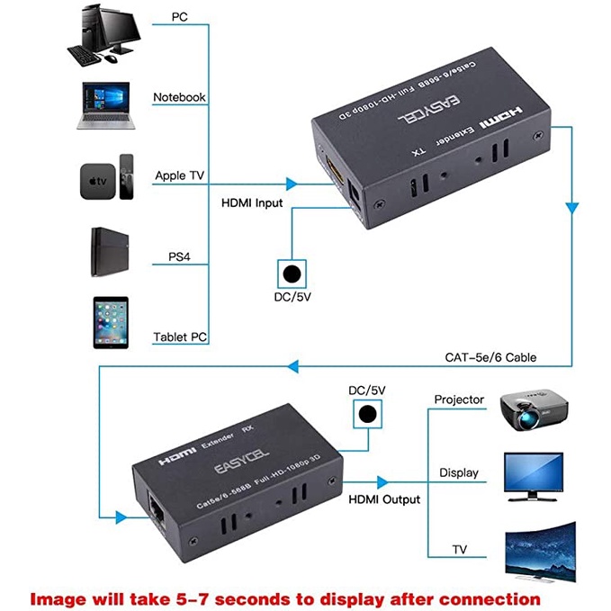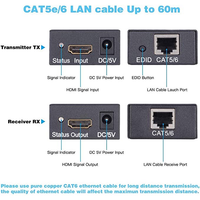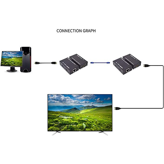 60M HDMI Extender(Transmitter and Receiver) Over signle RJ45 cat5e Cat6 Cat7 Ethernet Cables Up to 196ft(60m)