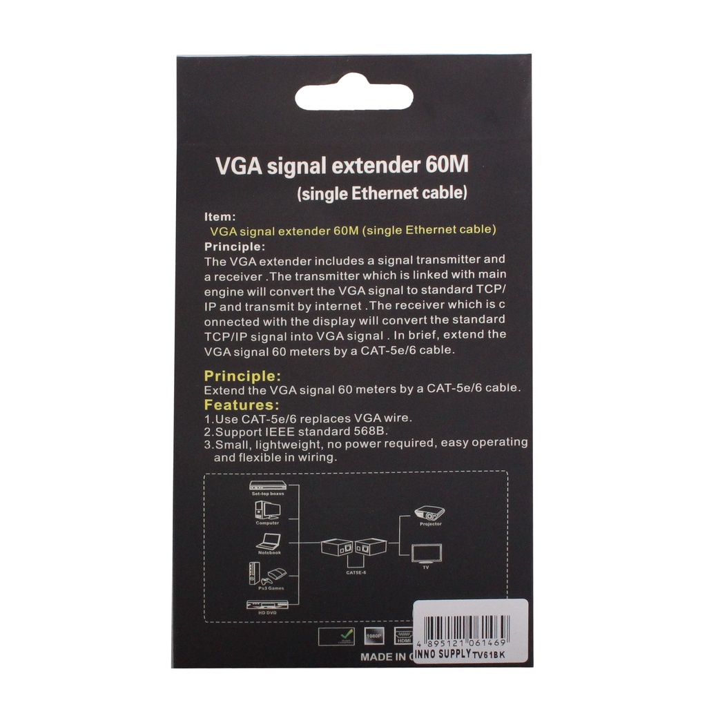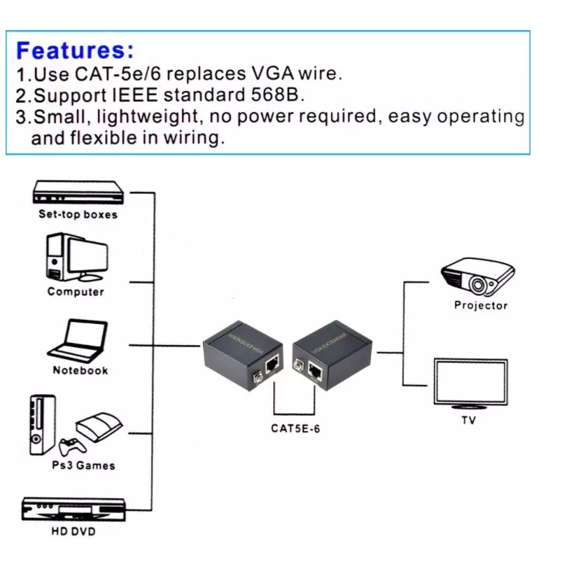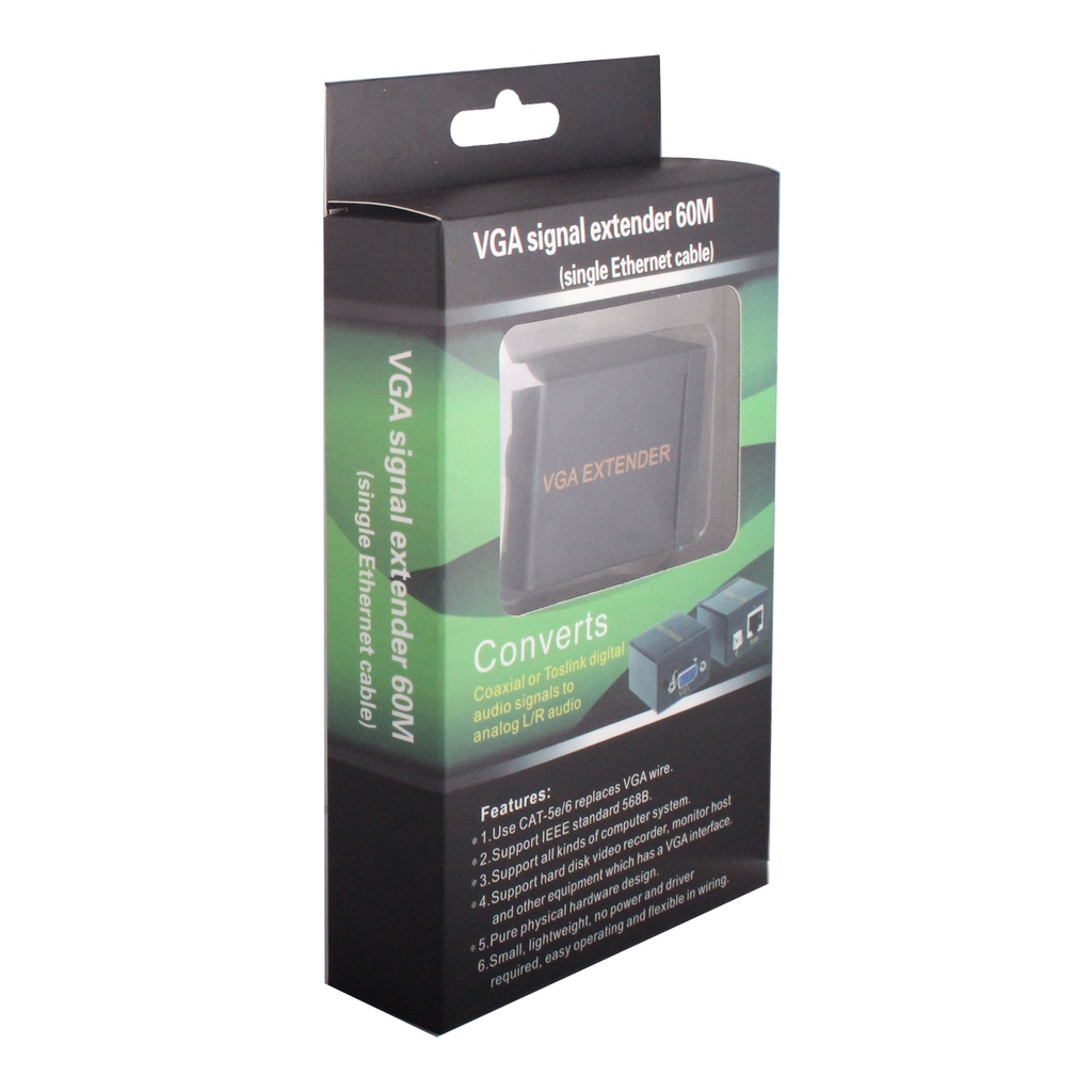 60M VGA to RJ45 Signal Extender Amplifier Converter Over CAT-5E/6 Ethernet Cable Transmitter and Receiver VGA SIGNAL EX