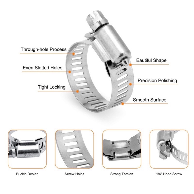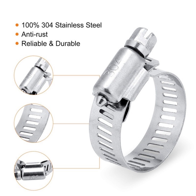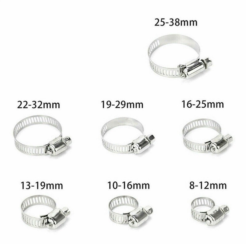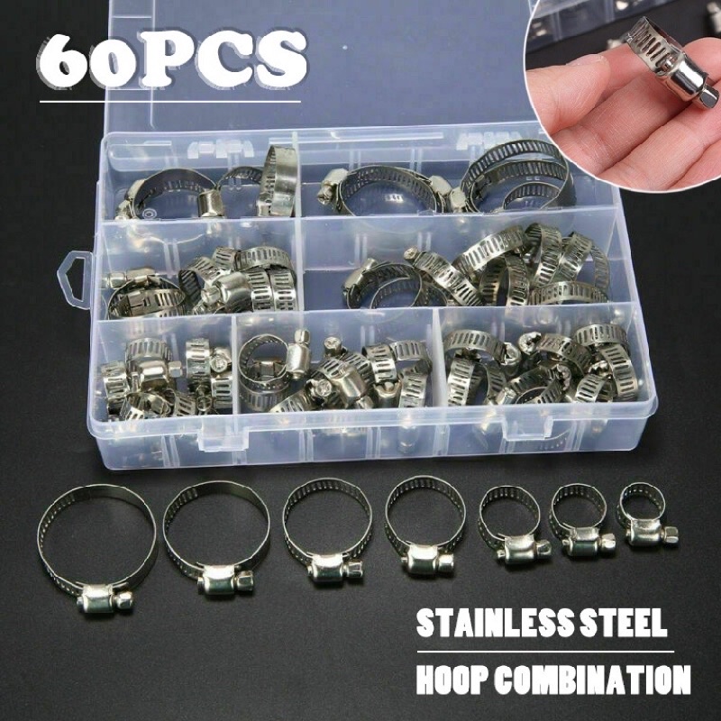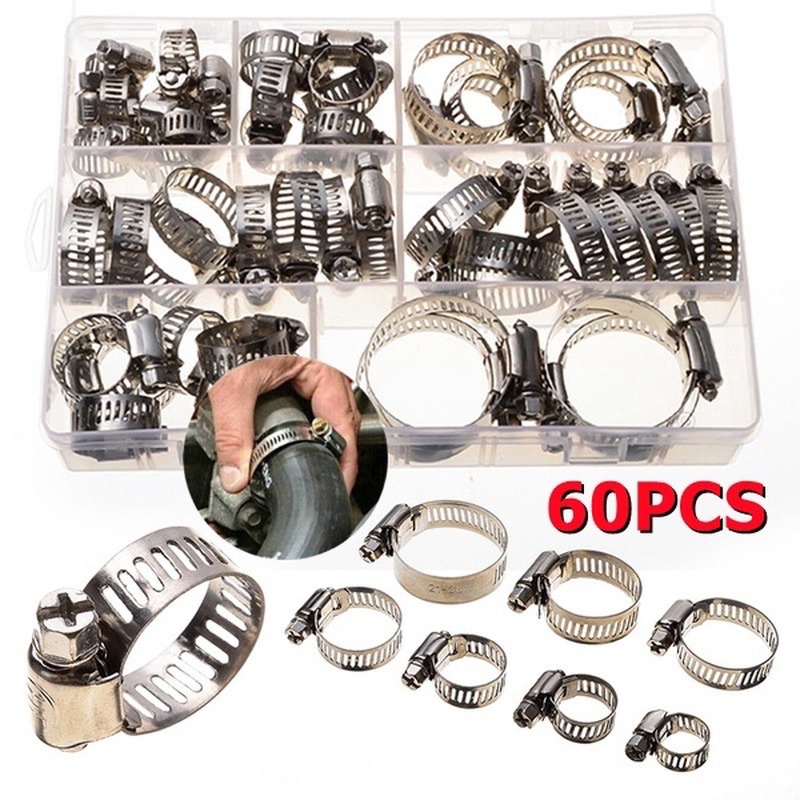 60PCS Stainless Steel Adjustable 8-38mm Range Worm Gear Hose Clamp, Fuel Pipe Tube Clip Hardware Spring Water Plumbing