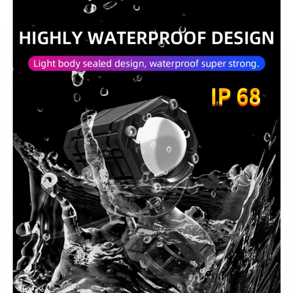 60W Tricolor Mini Driving Light Motorcycle Spot Light Auxiliary LED Light Projector Light Motorcycle Light Driving Lamp Universal For Motorcycle