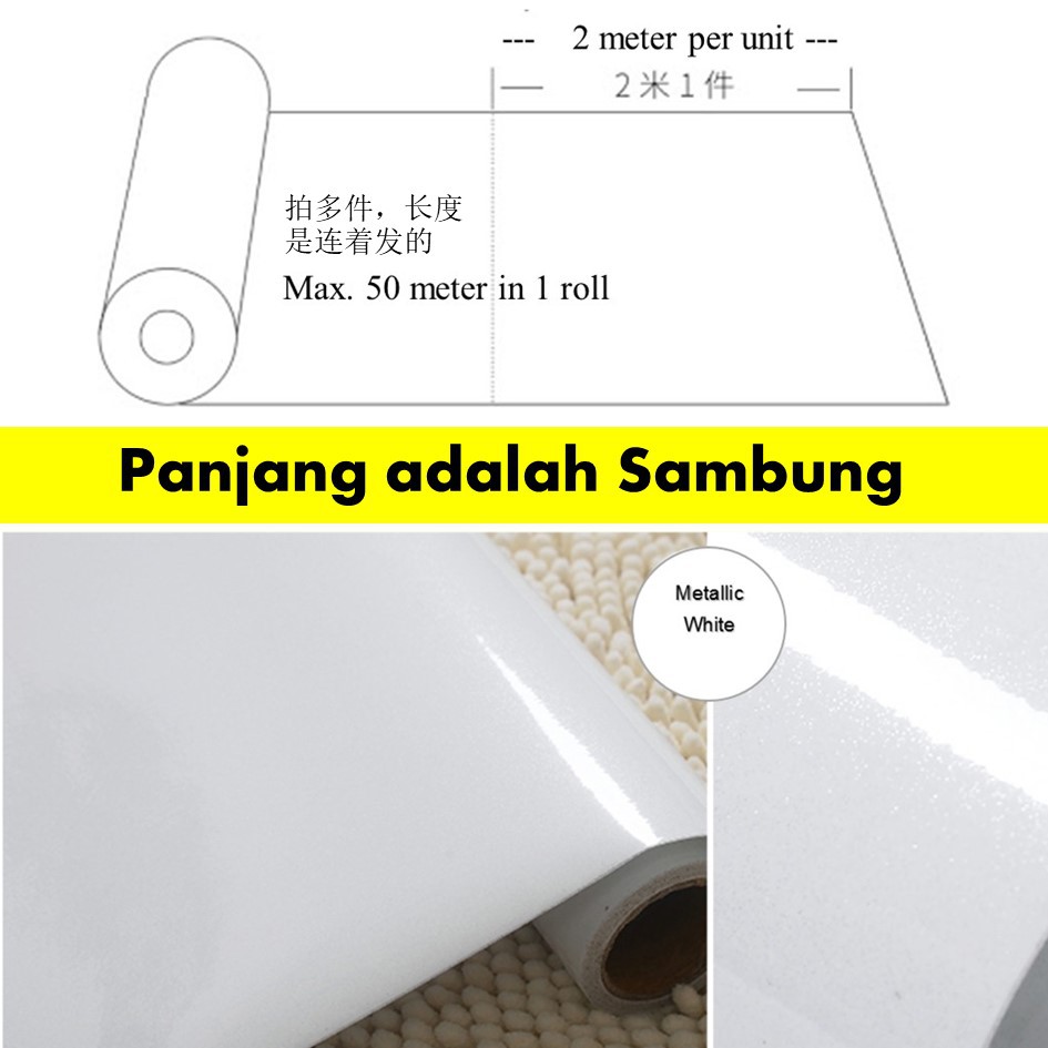 60cm x 2m Metallic Colour Wallpaper Cabinet Sticker/ Wallpaper Stiker Almari, warna metalik