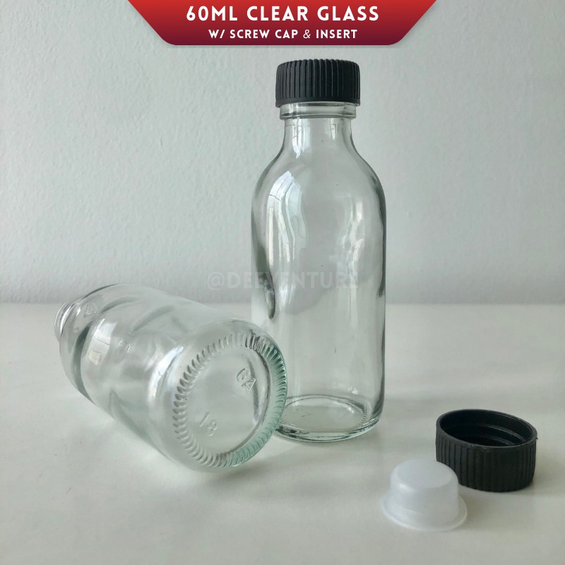 60ml Clear Glass Bottle Round Bottom with Cap & Insert / Mini Sampling Glass | Botol Kaca Viral