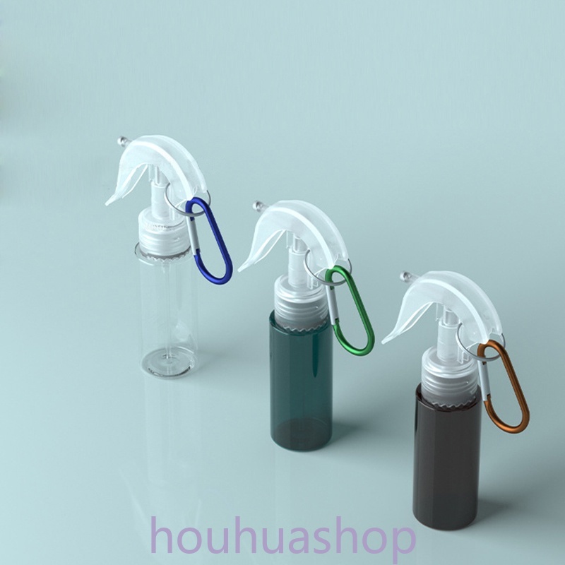 60ml Transparent Plastic Trigger Spray Bottles With Carabiner Hook Refillable Portable Moisture Makeup Container Travel